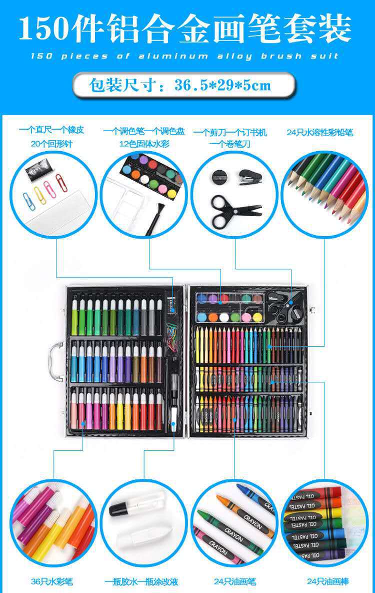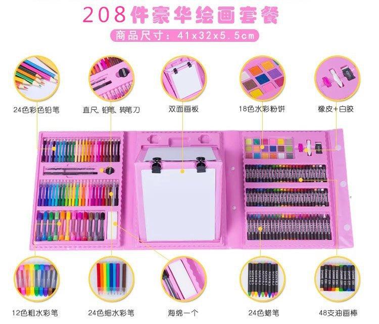 Set de pintura con plumas de acuarela directo de fábrica 208 Caja de regalo con tablero de dibujo doble herramientas de dibujo para niños set de plumas de acuarela