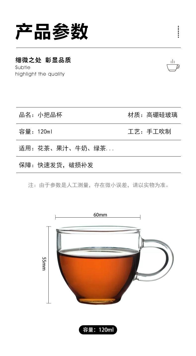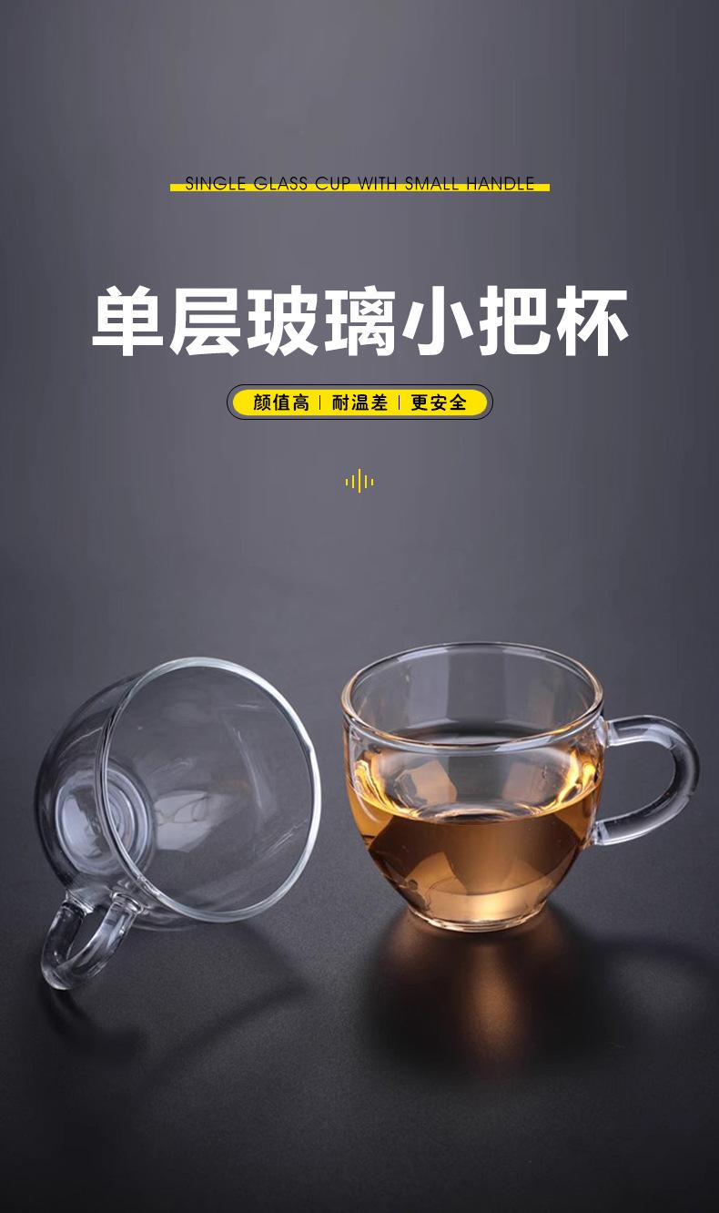 Taza de té pequeña de una sola capa, taza de té transparente de vidrio, resistente al frío y al calor, juego de té de vidrio, taza de degustación con asa pequeña, gruesa