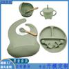 Babero de silicona para niños, plato de cena de silicona, juego de cinco piezas, plato de succión para entrenamiento complementario de alimentos para bebés, juego de vajilla