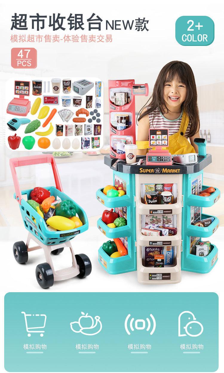 Caja registradora de simulación para niños transfronterizos, carrito de compras, casa de juego, supermercado, juguete para niñas de 3 a 6 años, regalo de 9.º cumpleaños