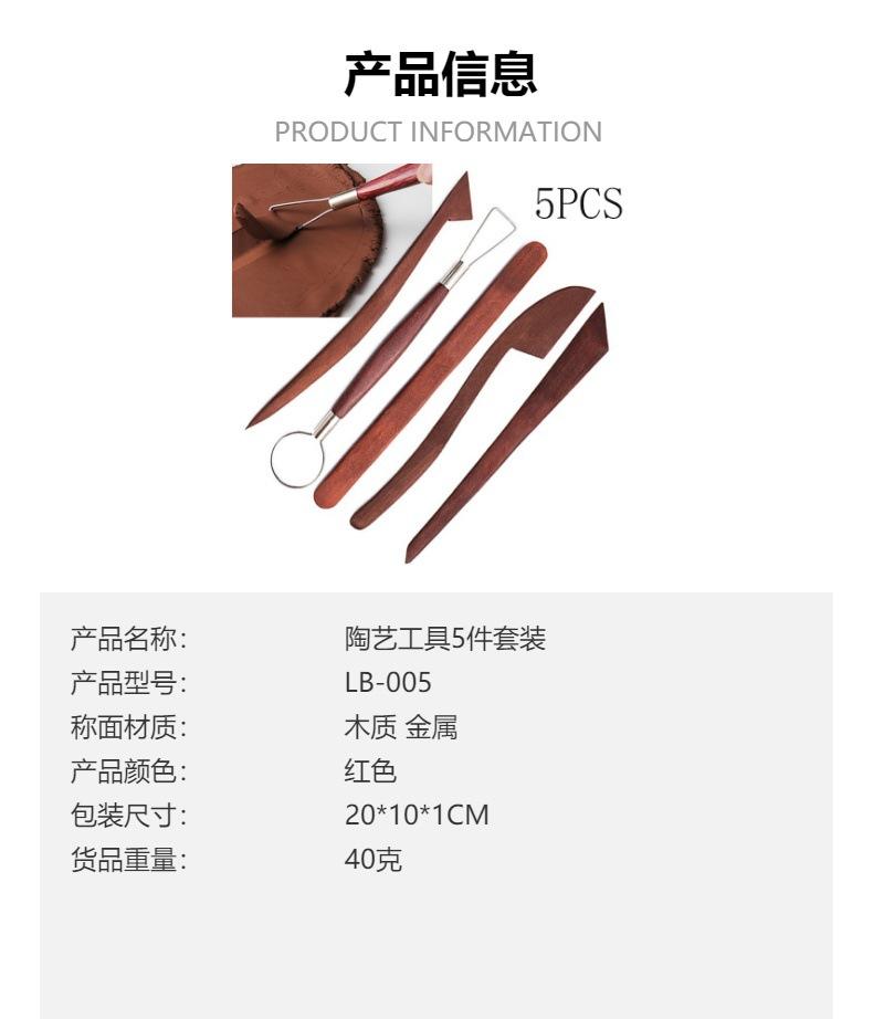 Herramientas de cerámica transfronterizas, 5 piezas de traje, escultura de arcilla de madera, anillo de arte, cuchillo de tallado, arcilla, juego de producción de arcilla al por mayor