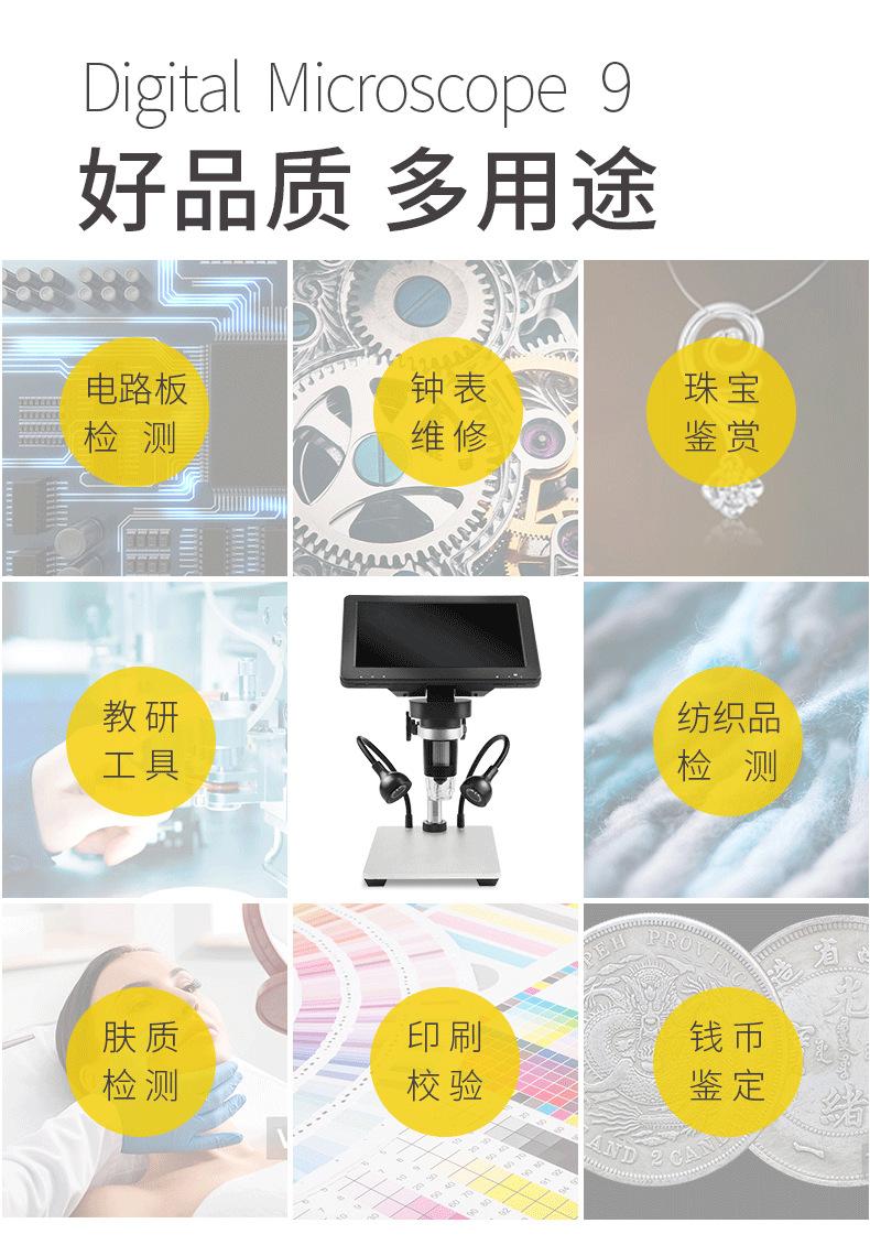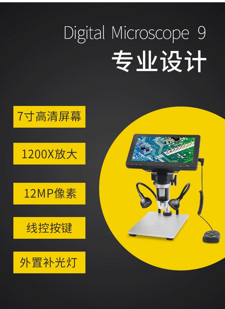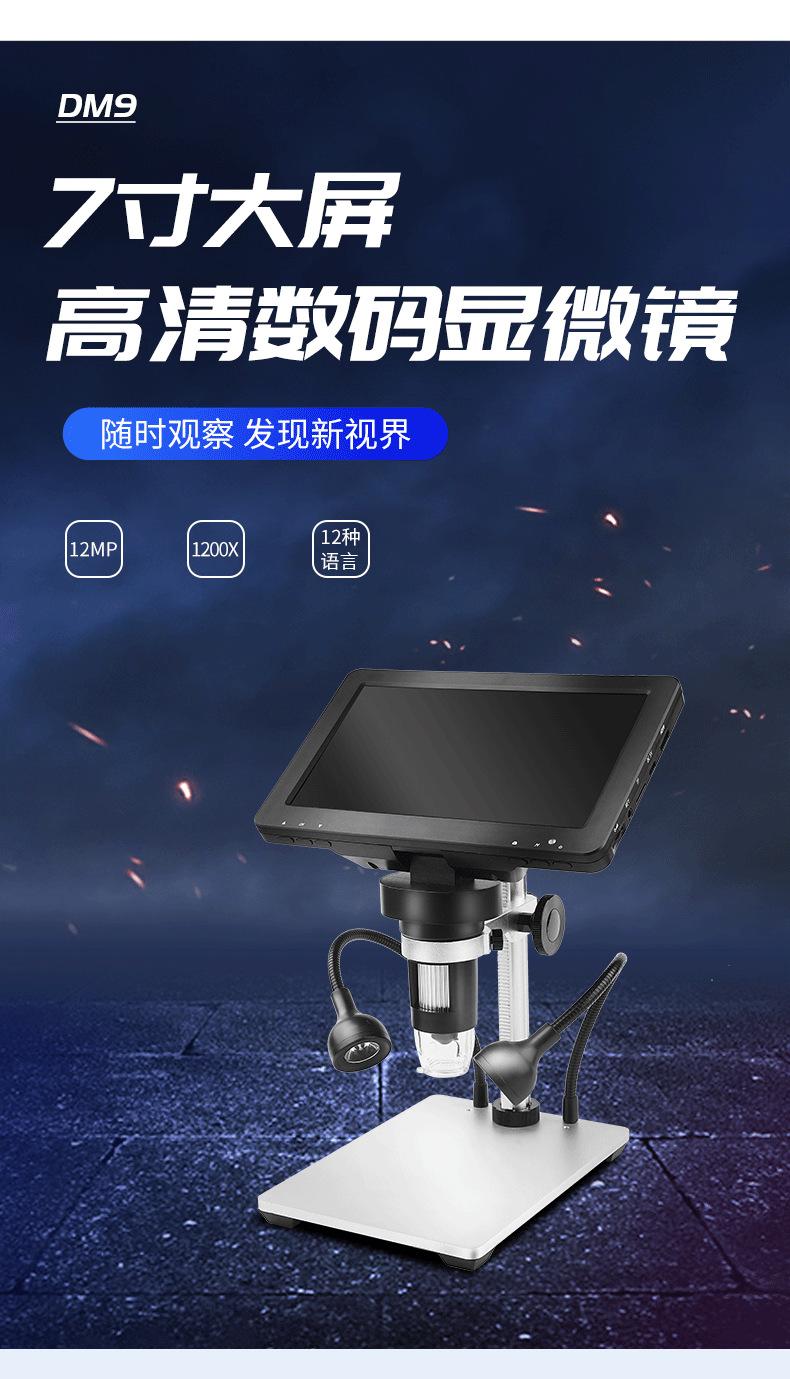 Microscopio electrónico de pantalla grande de 7 pulgadas caliente transfronterizo DM9 Microscopio digital USB HD herramientas de mantenimiento y prueba