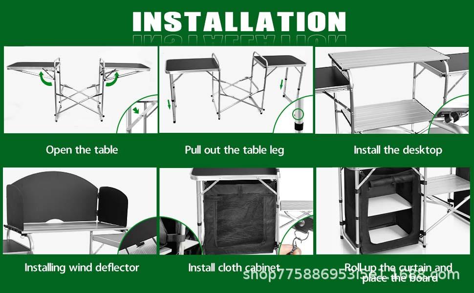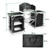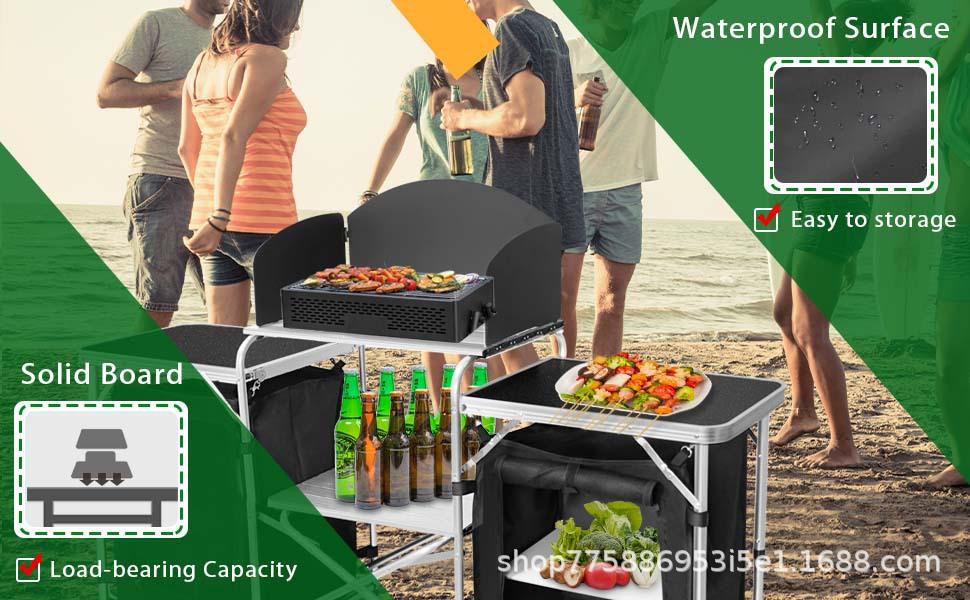 Amazon caliente mesa de cocina móvil para camping al aire libre aleación de aluminio mesa plegable con gabinete de tela mesa de camping al aire libre