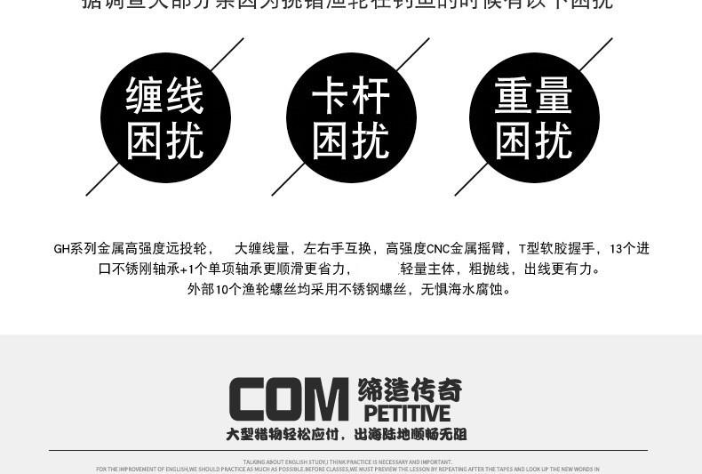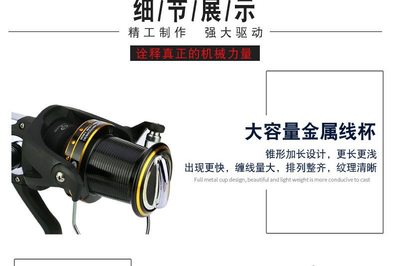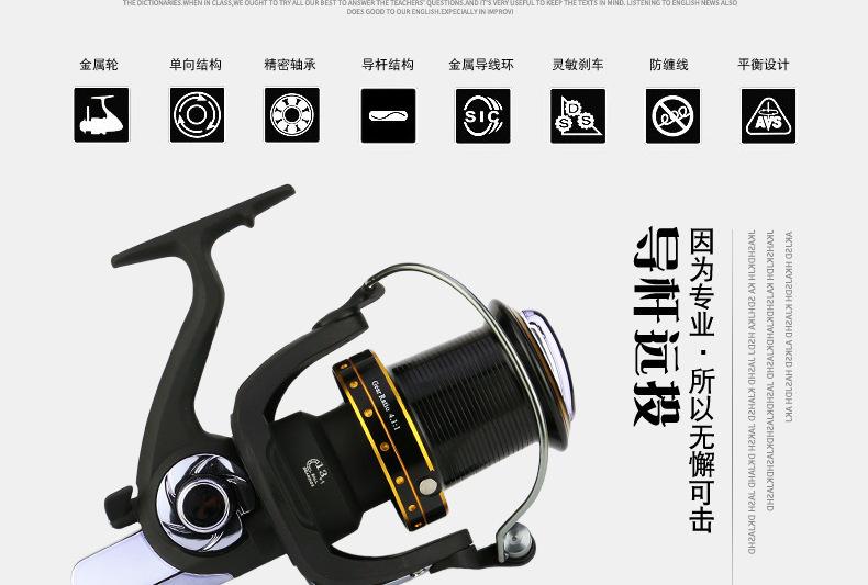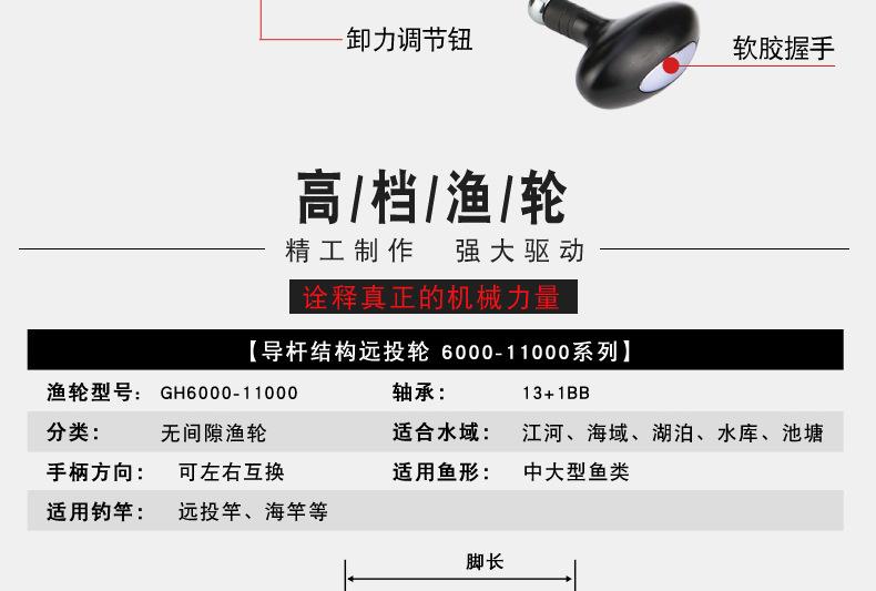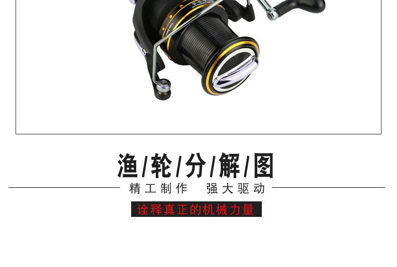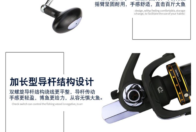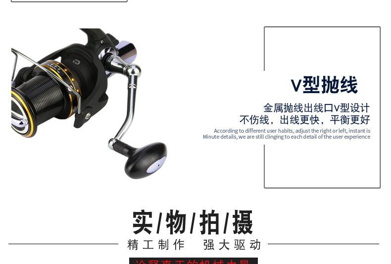 Este es un carrete práctico de lance largo, un verdadero carrete de lance largo. El carrete está especialmente diseñado para lances largos, adoptando una forma de V invertida según la mecánica de la ingeniería. Esto reduce eficazmente la fricción entre el carrete y la línea durante la liberación de la línea, lo cual es diferente de los carretes tradicionales. Los carretes tradicionales, para tener una mayor capacidad de línea, se hacen profundos y estrechos, lo cual no favorece el lance. Nuestro carrete de lance largo es tanto ancho como poco profundo, lo que permite que la línea fluya suavemente durante la liberación, logrando así el propósito del lance largo, superando fácilmente los 200 metros, y hay un registro de cliente de capturar un pez de 120 jin.