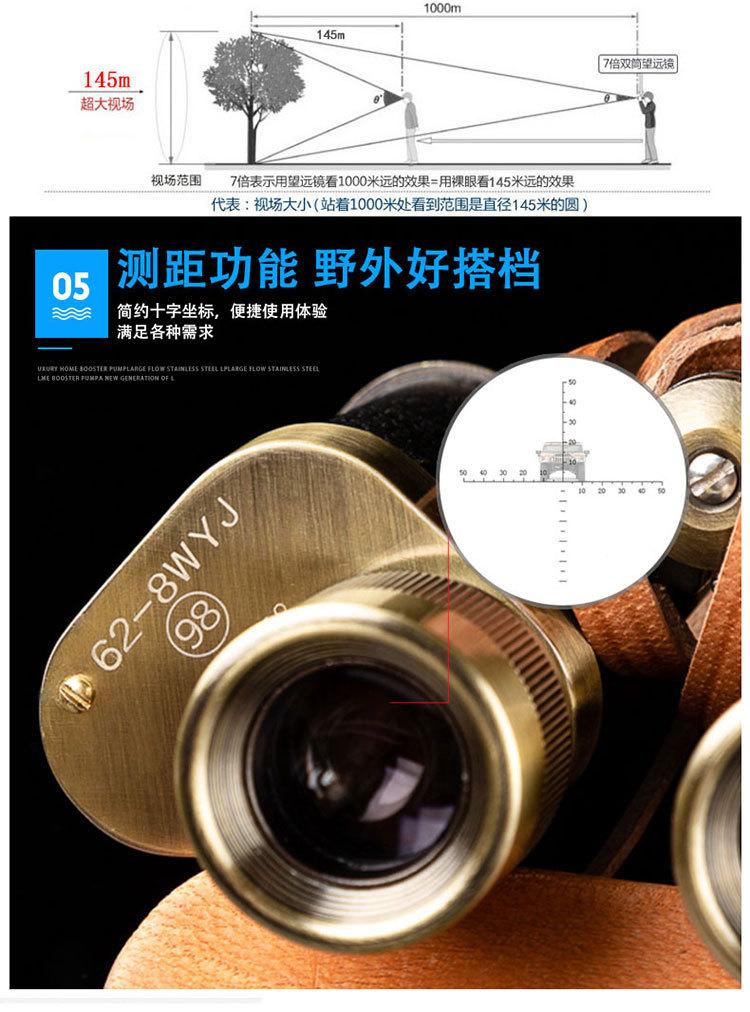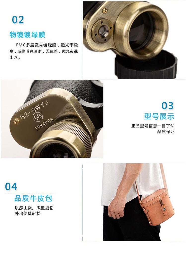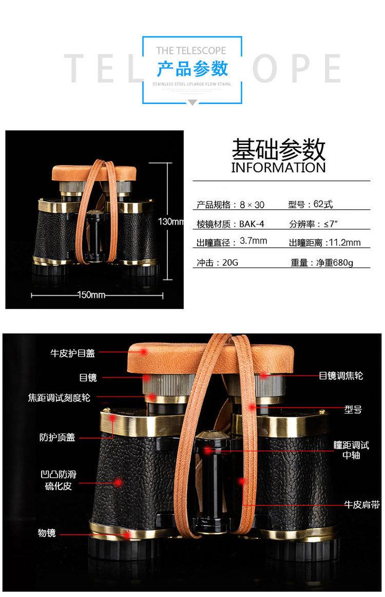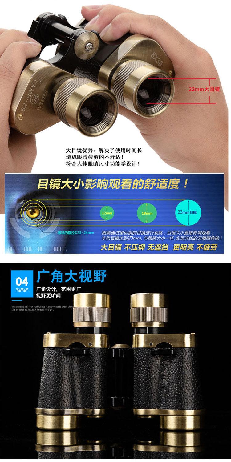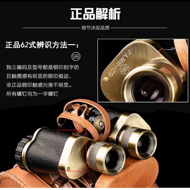 Binoculares auténticos estilo 62 de bronce con alta potencia, alta definición, ejército 8X30wyj, visión nocturna, visión con telémetro totalmente metálica