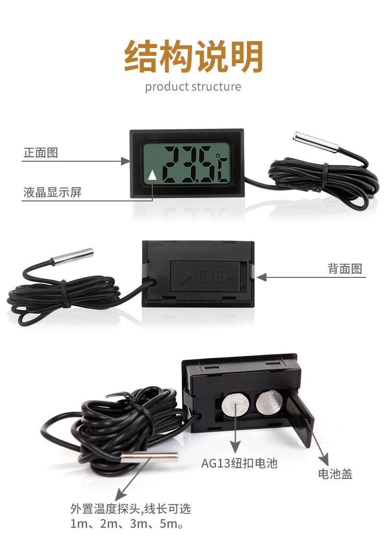 [Introducción del Producto] Este producto es un termómetro e higrómetro electrónico para reptiles de exportación con una sonda incorporada. Es de tamaño pequeño, hermoso y práctico, de medición precisa y conveniente para usar en espacios de cría más pequeños. Actualiza los datos cada 5 segundos y monitorea el entorno de cría en cualquier momento. Es adecuado para varios reptiles como arañas, escorpiones, ranas cornudas, lagartos, camaleones, tortugas, serpientes, etc.