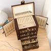 Caja de Joyería de Gran Capacidad Estilo Chino Caja de Almacenamiento de Joyería Multifuncional con Espejo de Maquillaje Caja de Almacenamiento para Empaque de Collares Aretes
