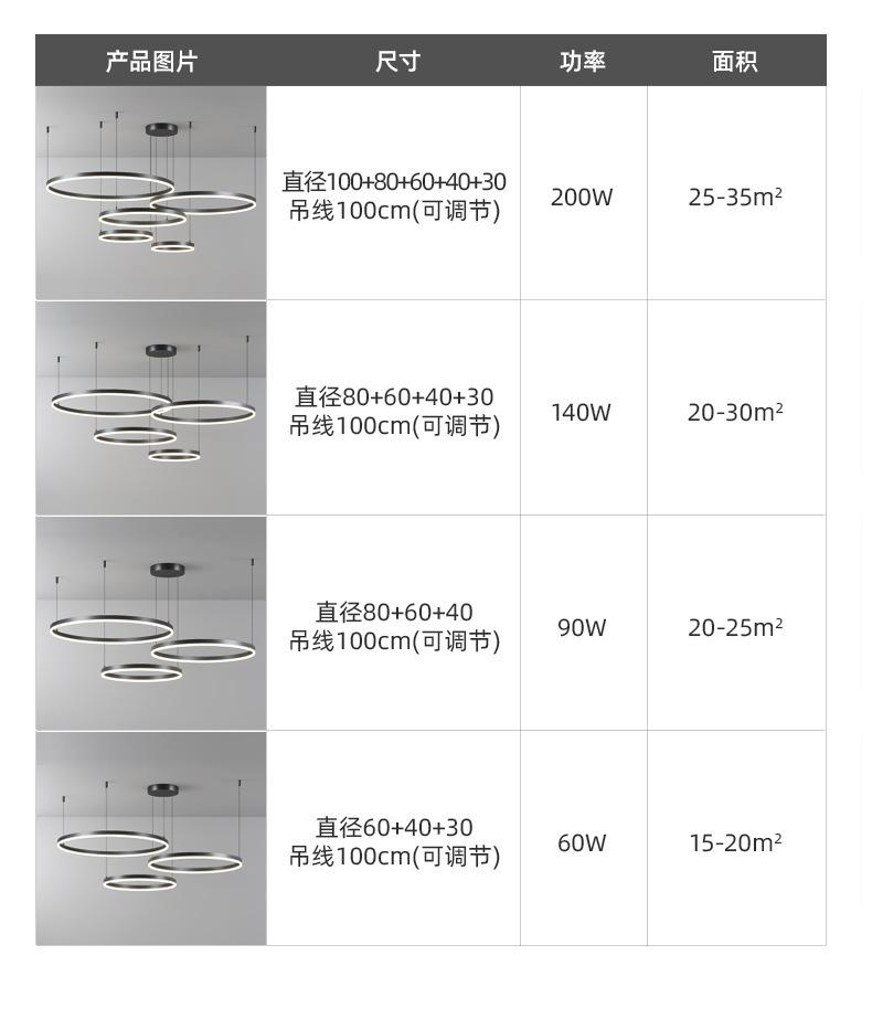 Black three circles 30+40+60cm-three-color light, Black three circles 30+40+60cm-stepless dimming, Black three...