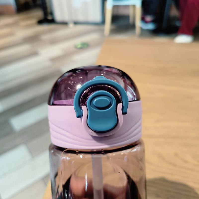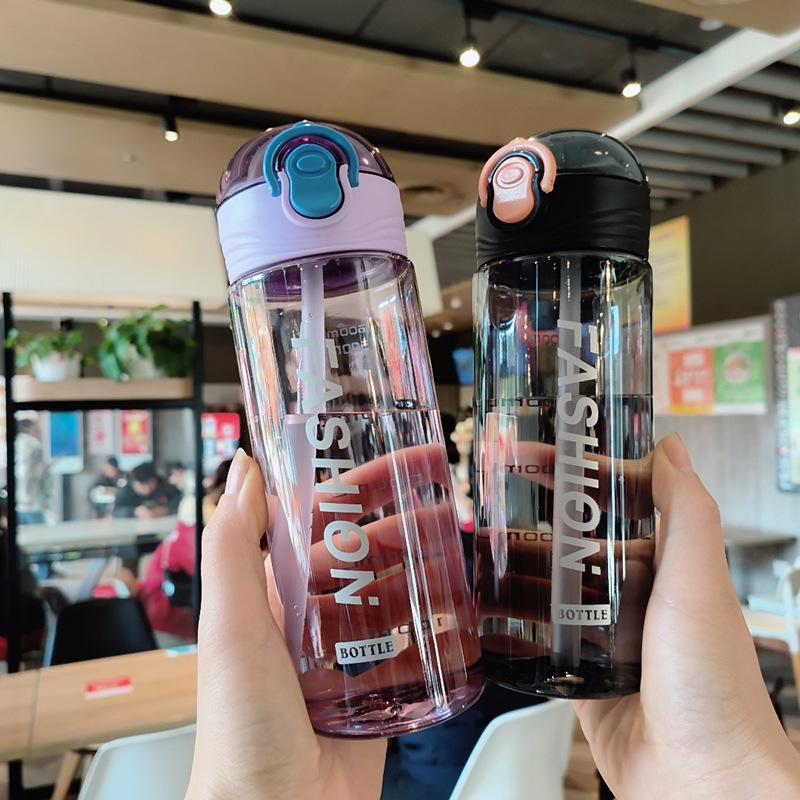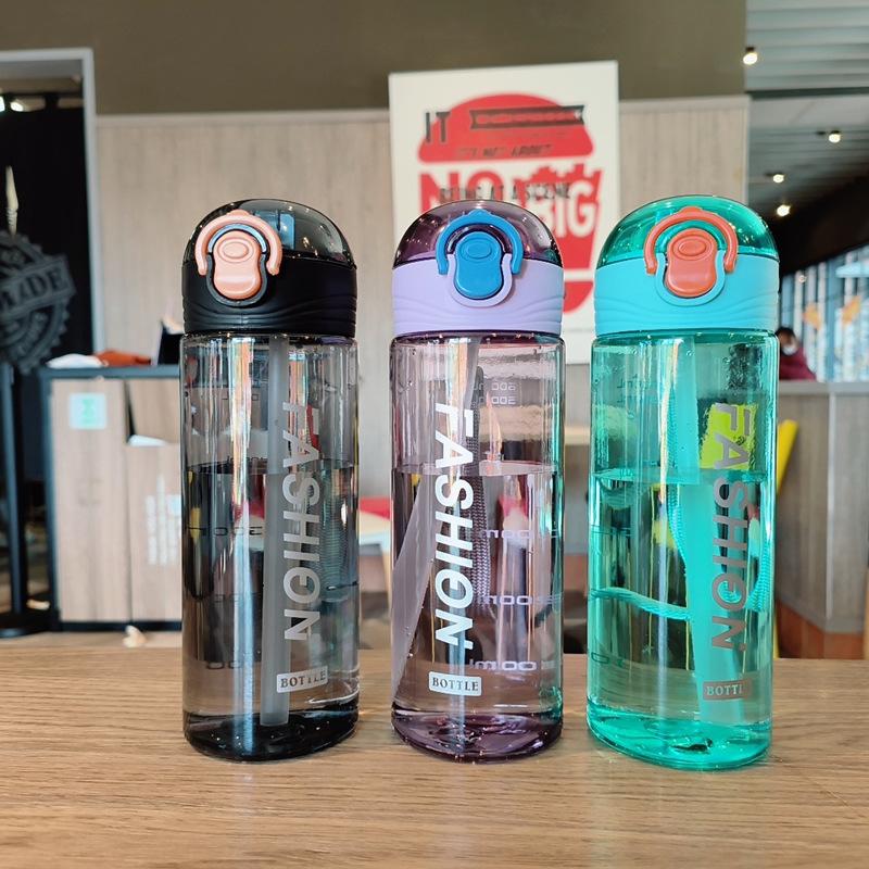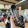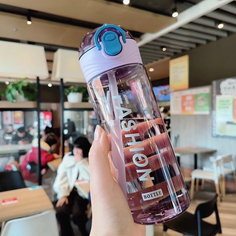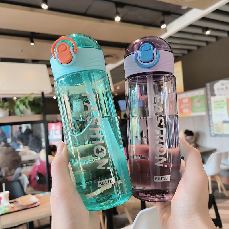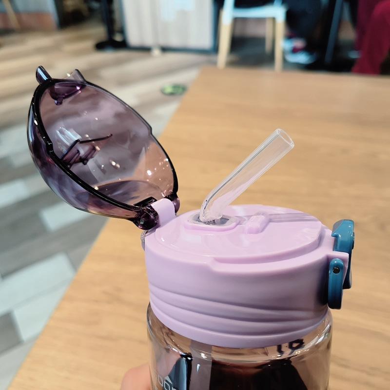 Vaso de plástico portátil a prueba de fugas, creativo, moderno, deportivo, informal, inglés, sencillo, para hombres y mujeres, estudiantes, vaso de agua con pajita.