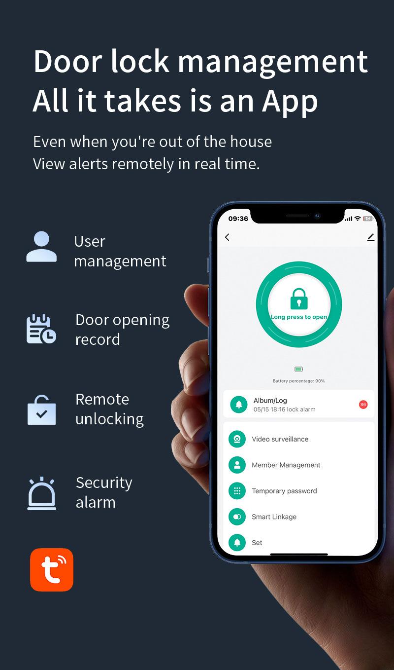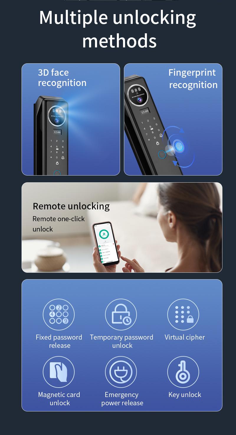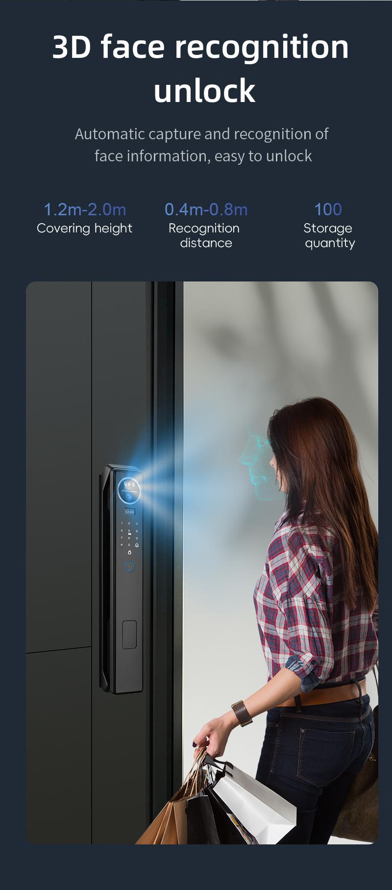 QLEUNG, cerradura inteligente con tarjeta de contraseña y huella dactilar totalmente automática, videoportero Tuya, venta directa de fábrica