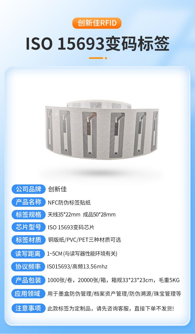 MB175 J188 Etiqueta NFC Yimashi 50X28mm Etiqueta Blanca Puede Cambiar Código Interno ISO15693 Etiqueta Cambio de Código