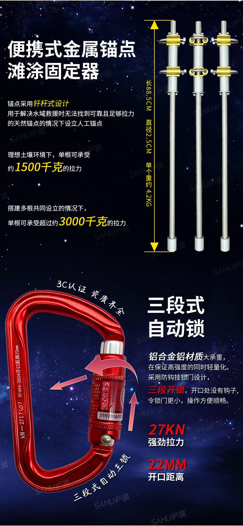 Traje de fijación de playa portátil, rescate acuático al aire libre, dispositivo de fijación de punto de anclaje de metal multiusos, equipo de emergencia