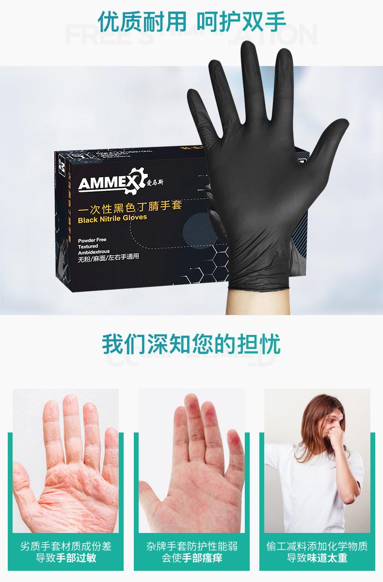 Aimas Guantes Desechables Negros de Nitrilo Espesados Duraderos para Tatuajes Protección Laboral Impermeables Protección para el Trabajo