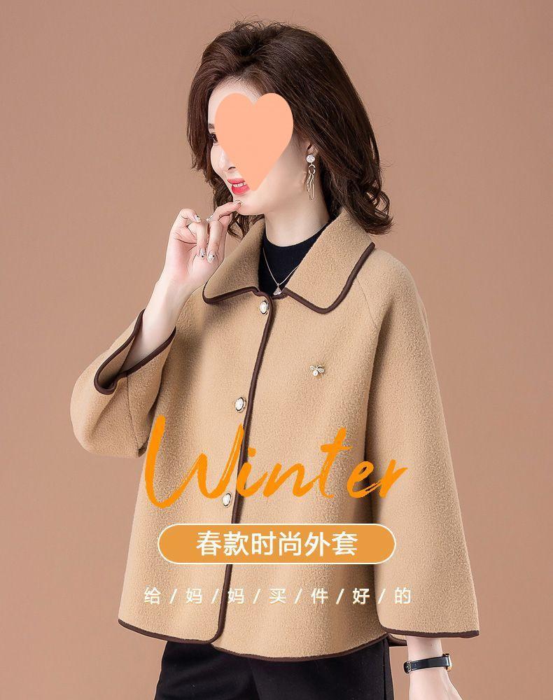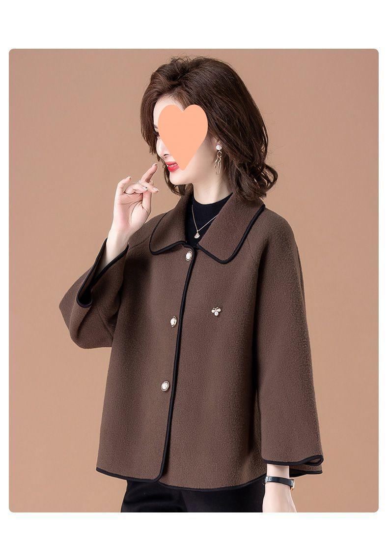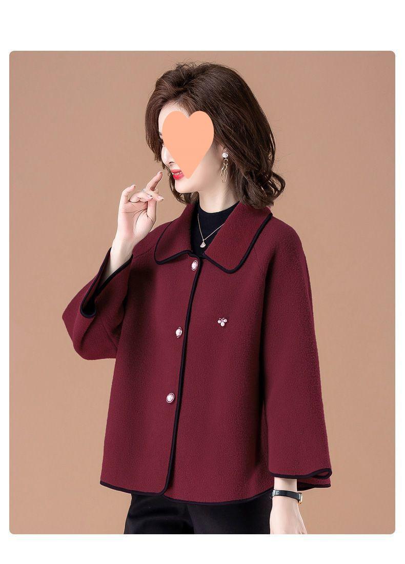 Abrigo corto de lana de doble cara estilo occidental para madre, moda de otoño e invierno para mujer, abrigo de lana suelto y moderno para personas de mediana edad y mayores
