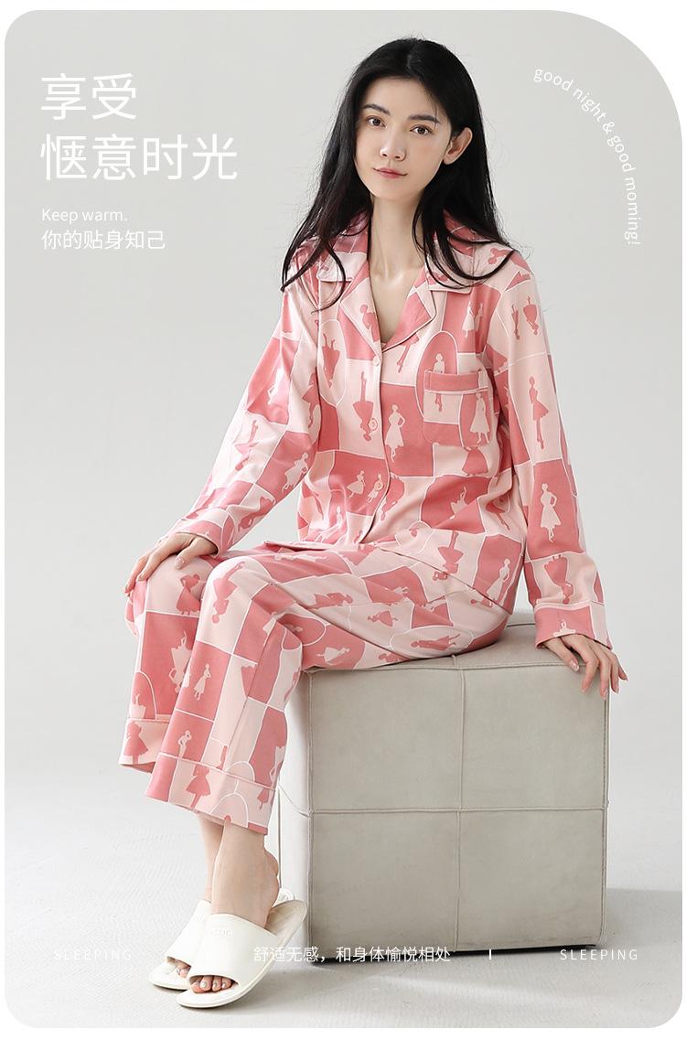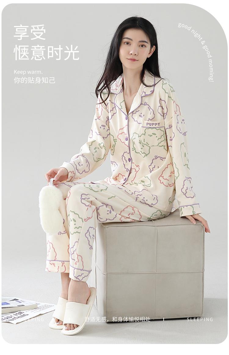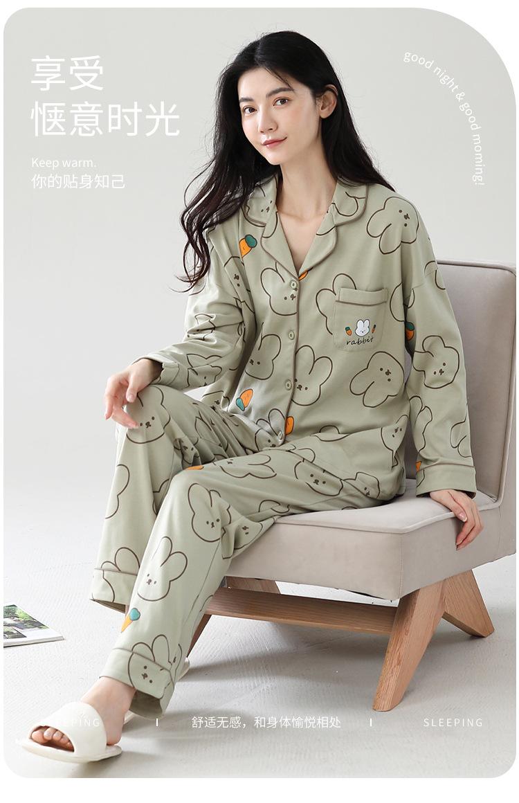 Nuevos pijamas de mujer otoño primavera y otoño pantalones de manga larga Nuevo lindo cárdigan de talla grande ropa de casa traje de dos piezas