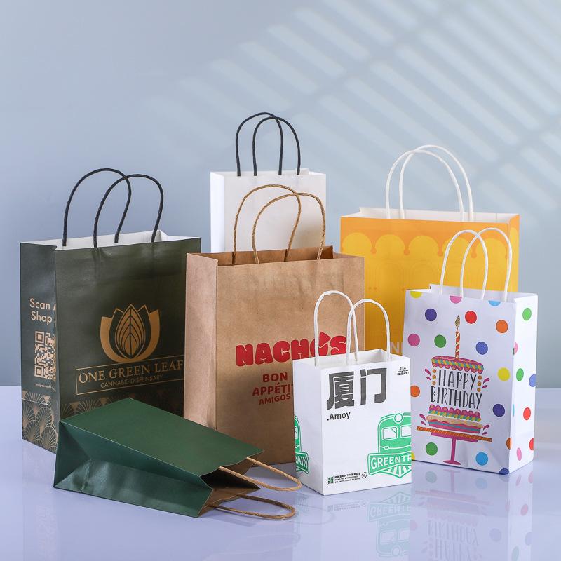 Bolsa de papel marrón para embalaje, bolso de mano, bolsa personalizada para comida para llevar, bolsa para té con leche, bolsa de papel pequeña, impresión de logotipo al por mayor