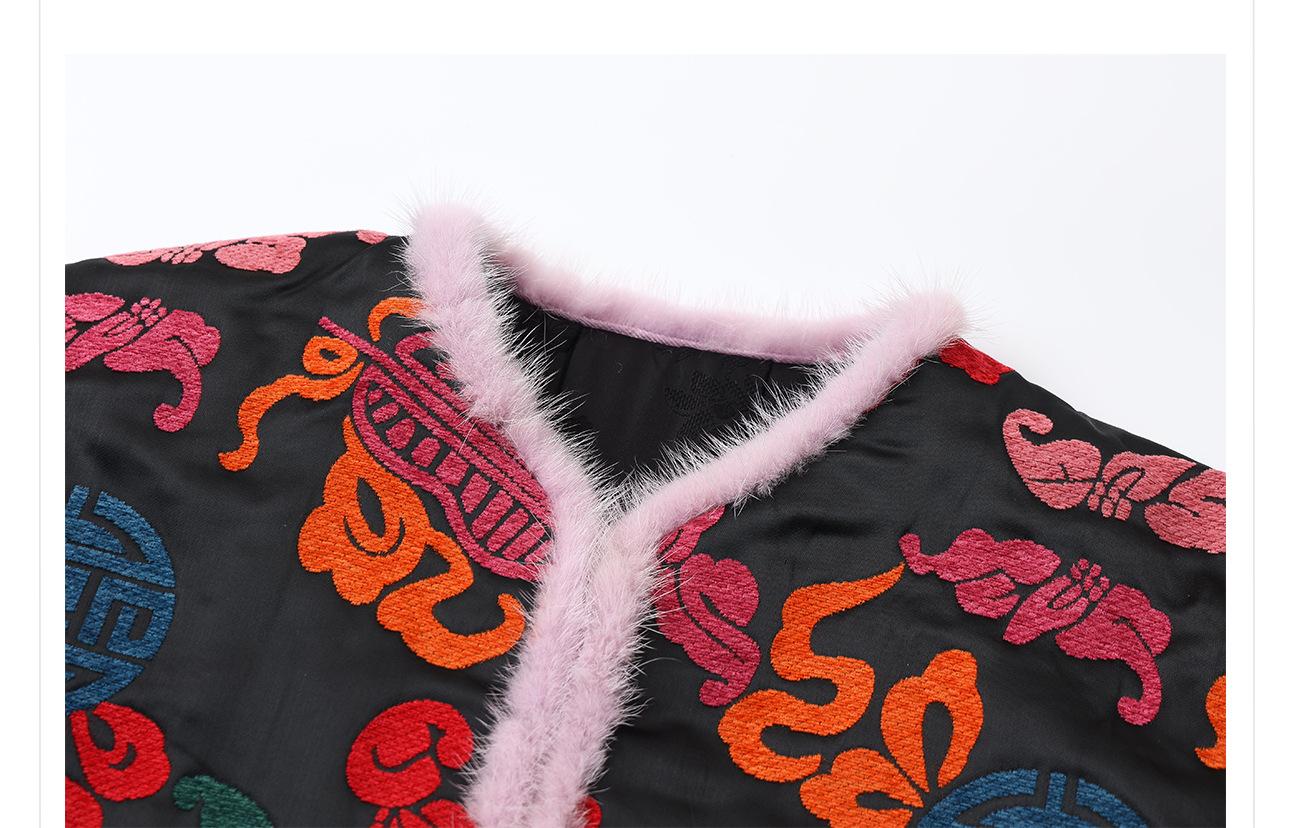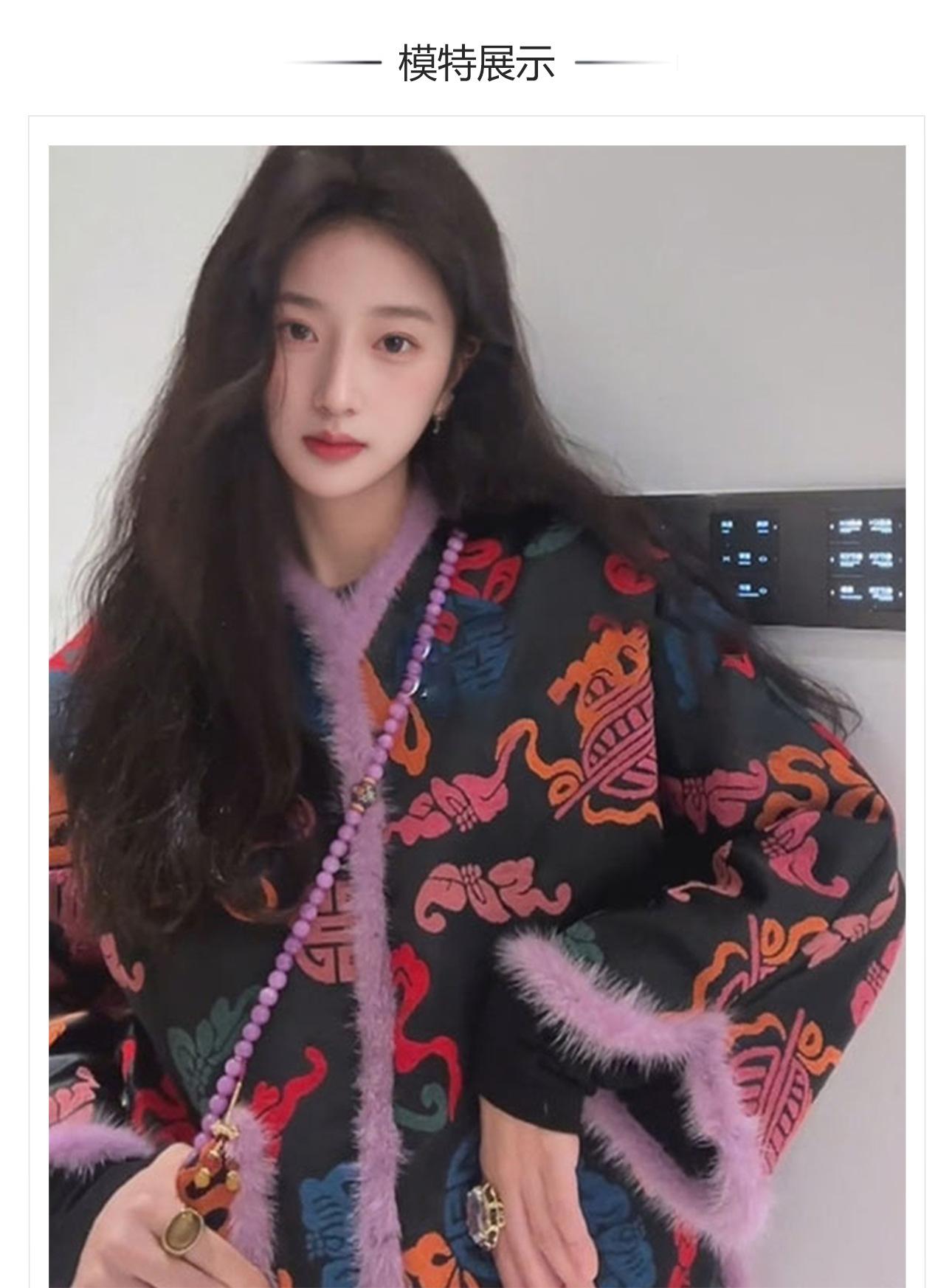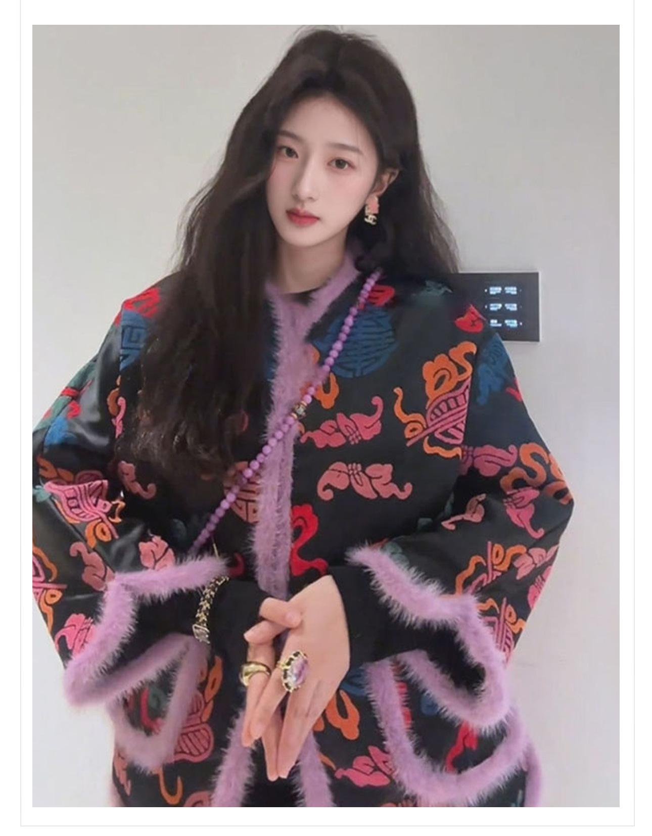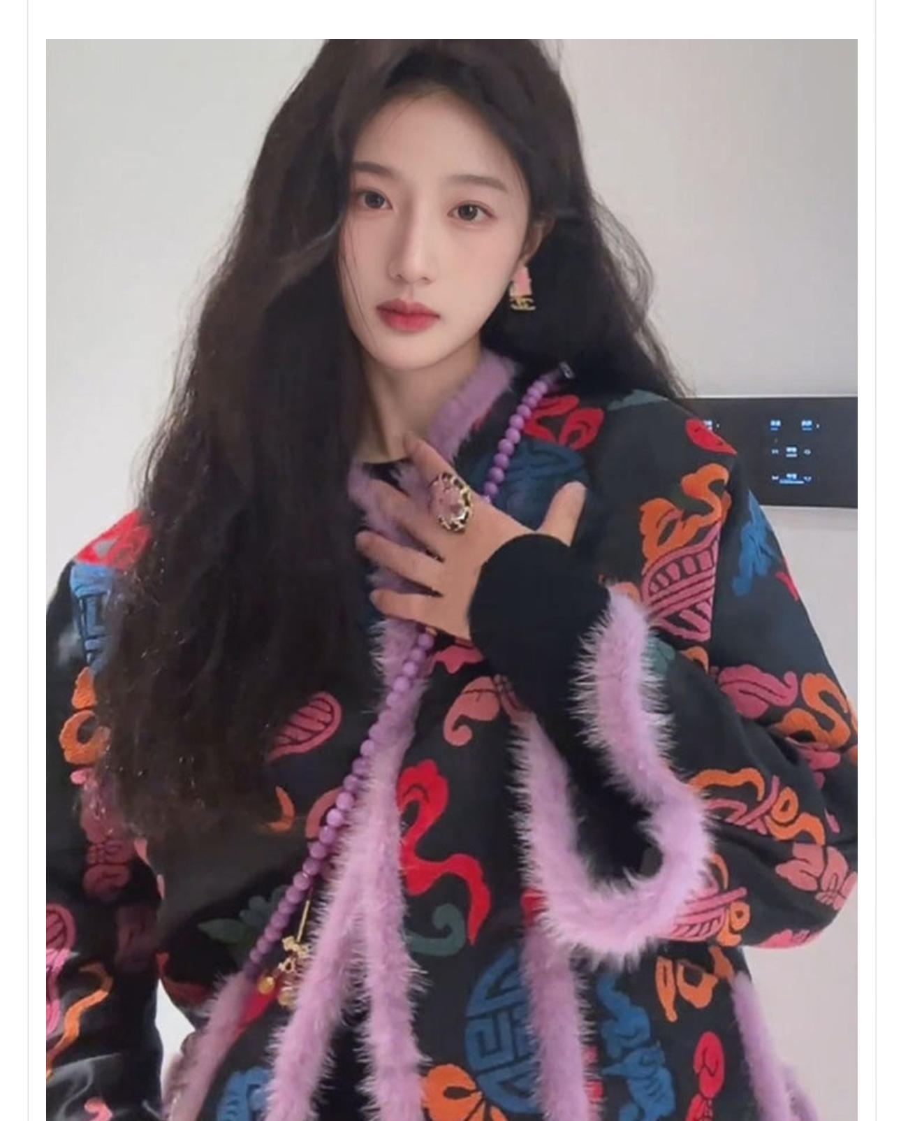 Otoño e Invierno 2025 Nuevo Estilo Nacional Cárdigan Holgado Diseño Bordado Sentido Pelo de Visón Chaqueta de Alta Gama para Mujer MY001