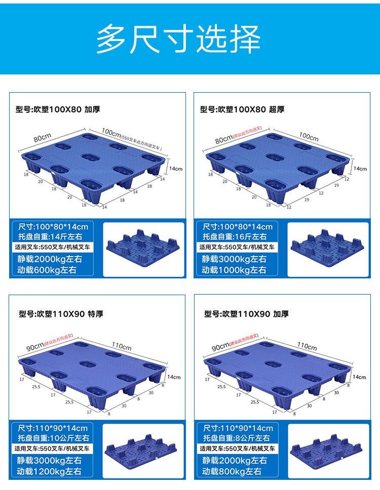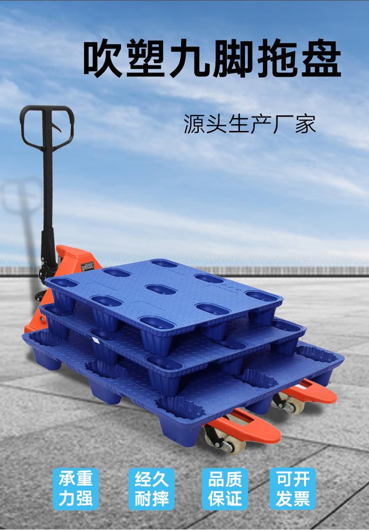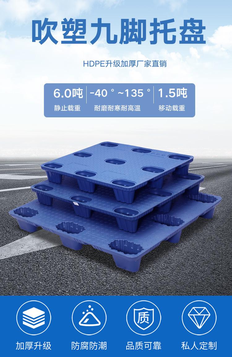 Palet de almacén de nueve pies de moldeo por soplado, palet logístico, tarjeta de carga, piso de palet, almohadilla a prueba de humedad, palet de plástico, carretilla elevadora