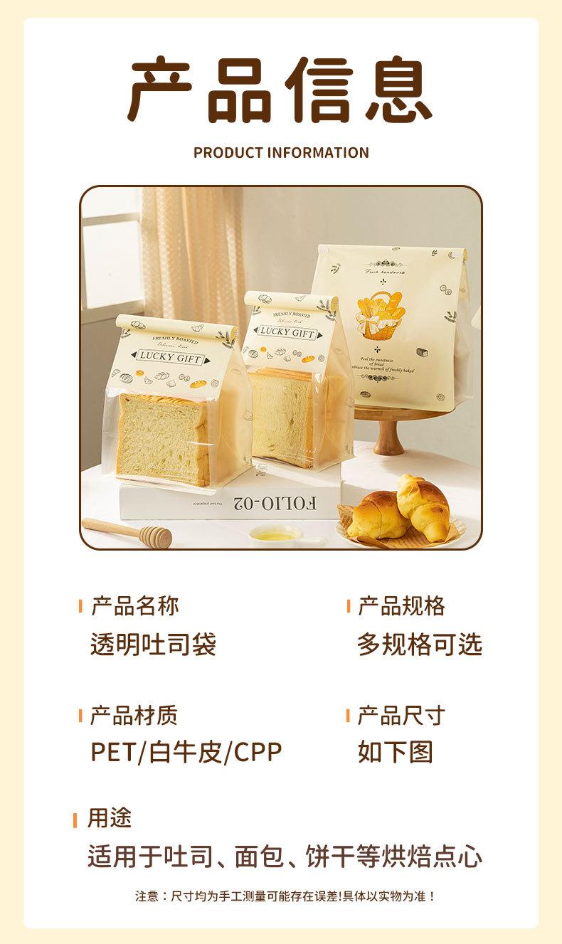 Bolsa de Embalaje para Tostadas de Pan Rizado Papel Kraft a Prueba de Aceite y Humedad Galleta Snack Transparente Pequeña Ventana Blanca Bolsa de Almacenamiento para Hornear