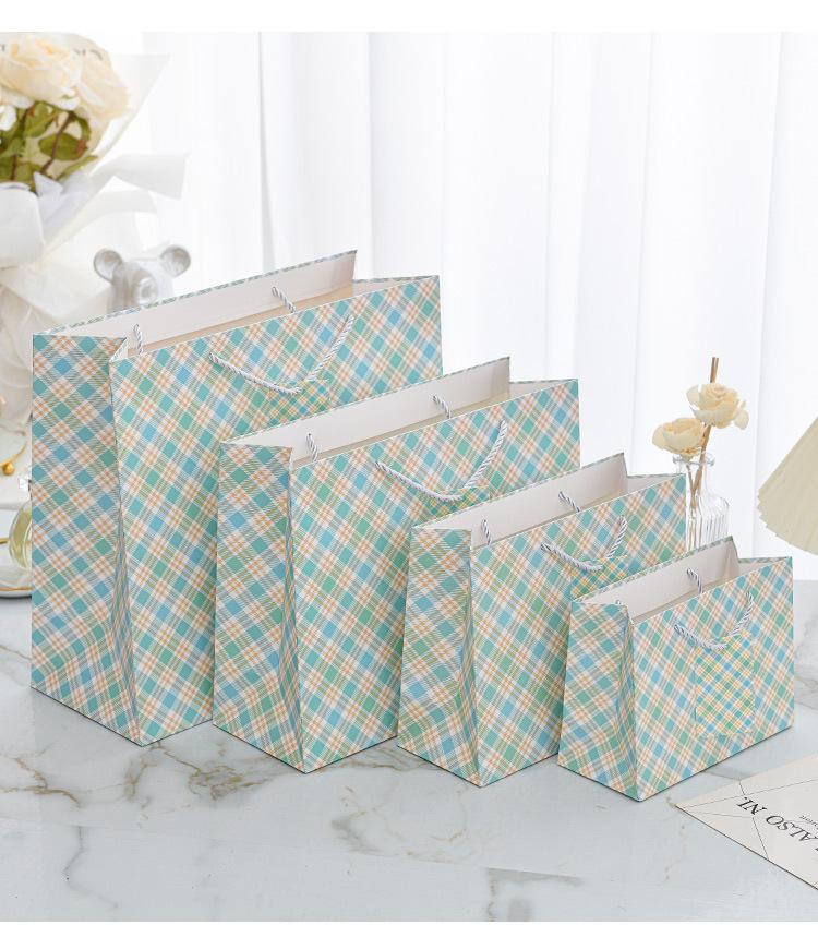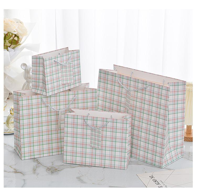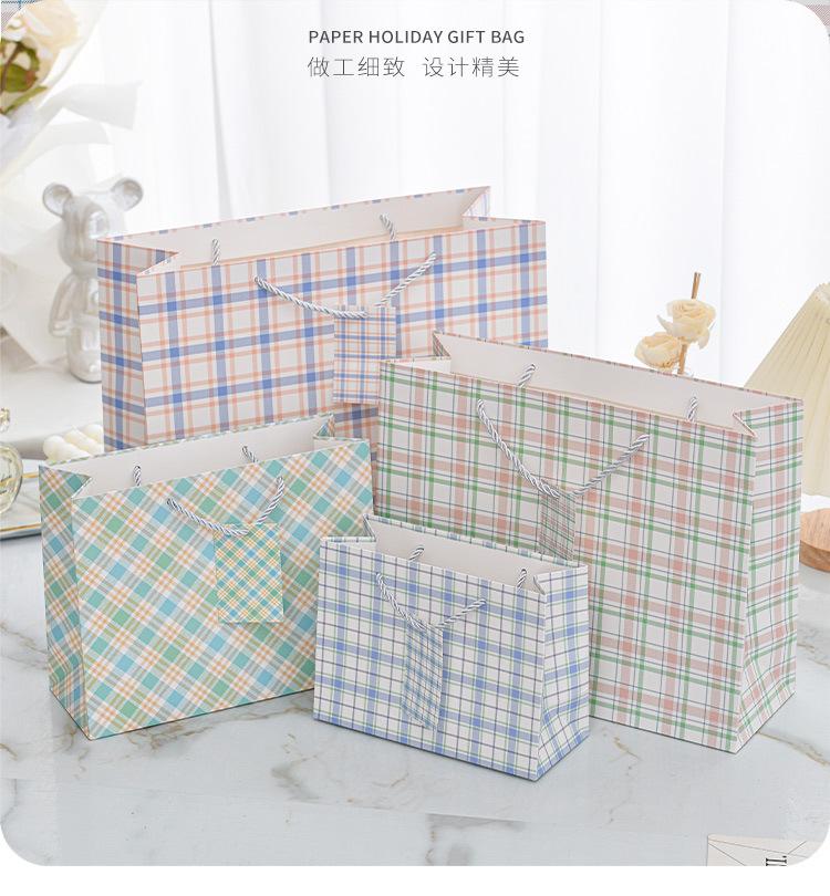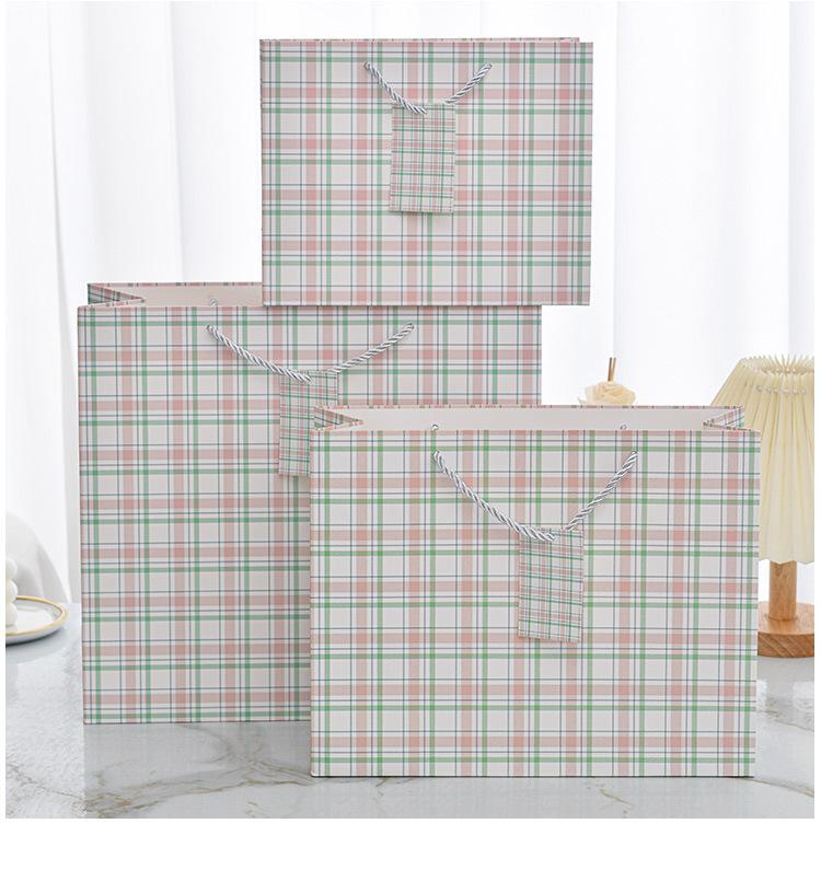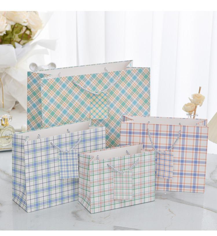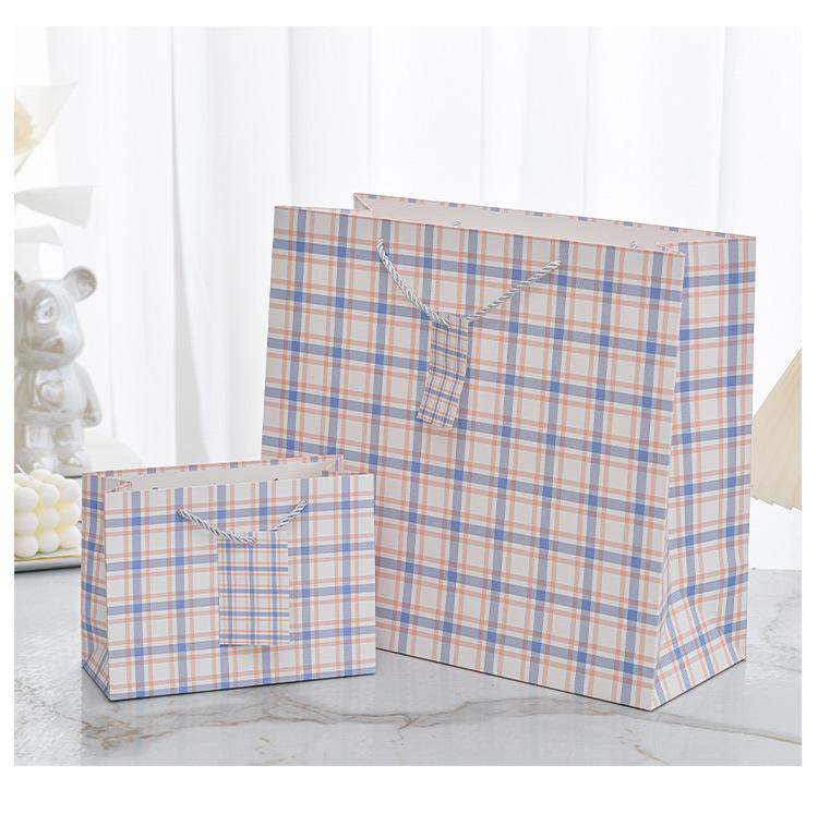 Bolsa de regalo a cuadros gruesa de placa horizontal, bolsa de papel de mano de moda fresca, papelería, joyería, tienda de ropa, bolsa de embalaje