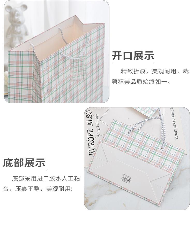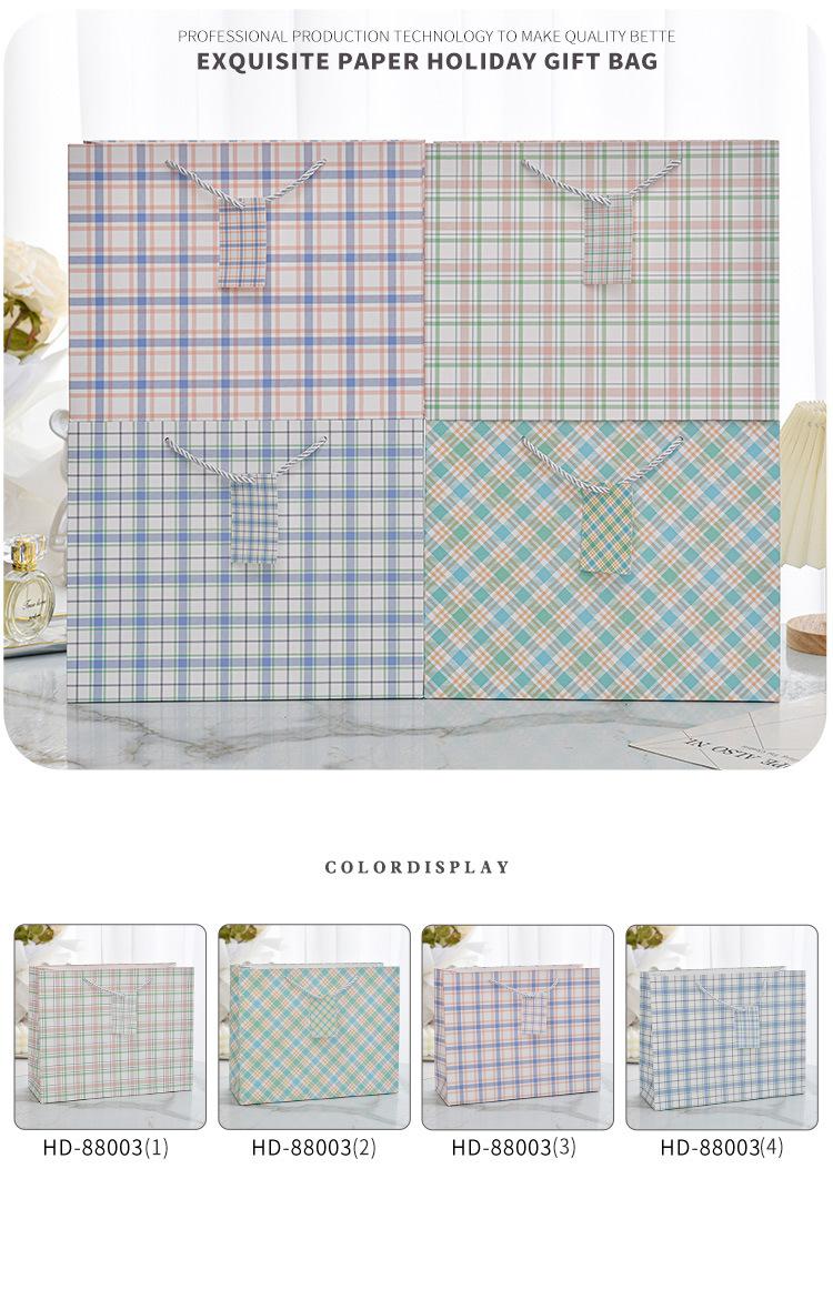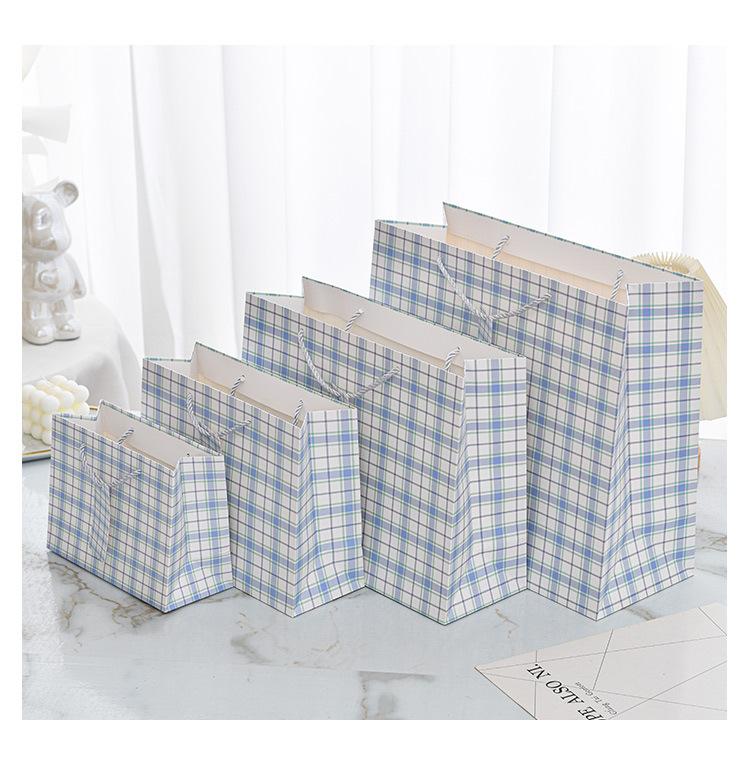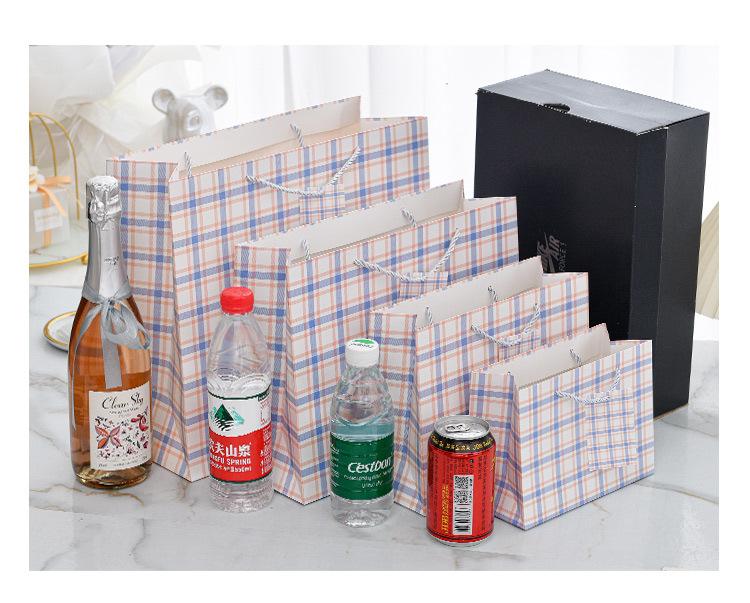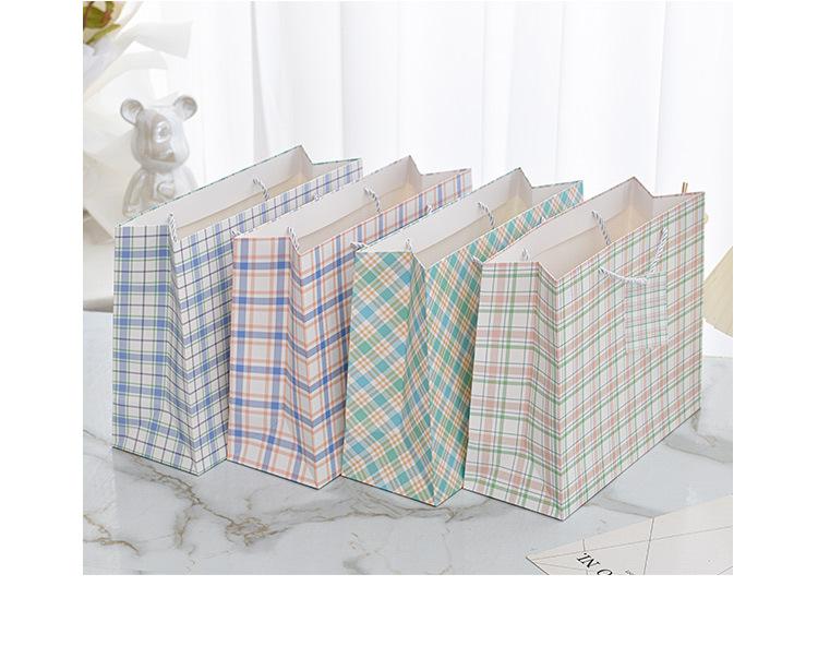Bolsa de regalo a cuadros gruesa de placa horizontal, bolsa de papel de mano de moda fresca, papelería, joyería, tienda de ropa, bolsa de embalaje