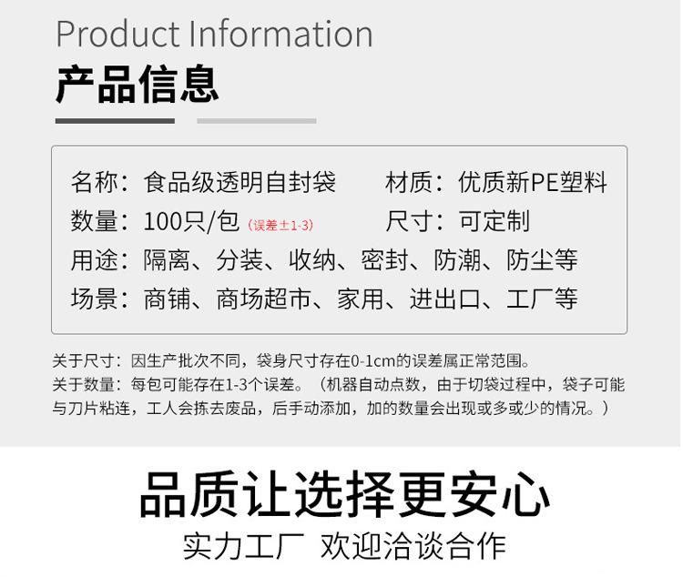 Bolsa de plástico autosellante de PE, transparente, para alimentos, para joyería, al por mayor, personalizada