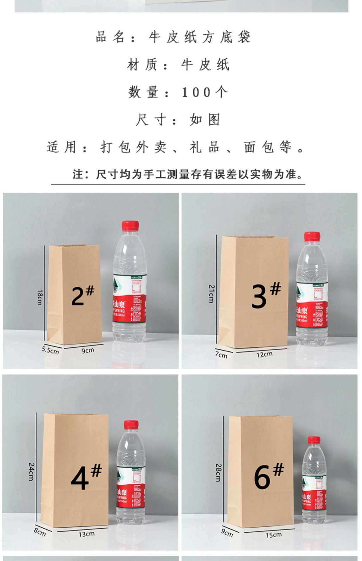 Bolsa de papel kraft, bolsa de fondo cuadrado, embalaje personalizado para hornear, bolsa para llevar, bolsa para empacar hamburguesas, bolsa para empacar pan, bolsa de almacenamiento