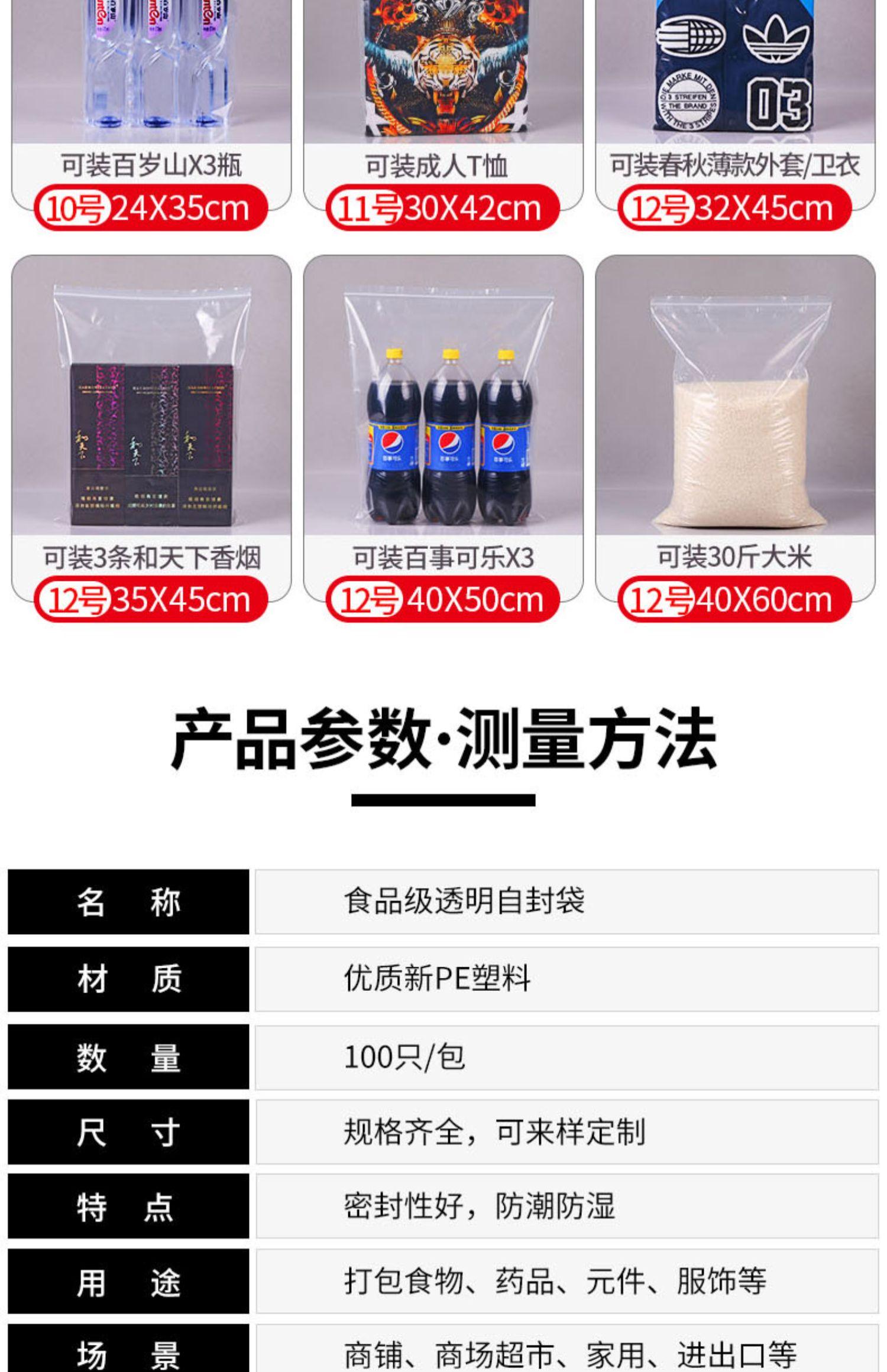 Bolsa de plástico transparente engrosada con autosellado, tamaño pequeño, bolsa de PE para sellar alimentos, bolsa de plástico para muestra de almacenamiento, juego de bolsas de embalaje