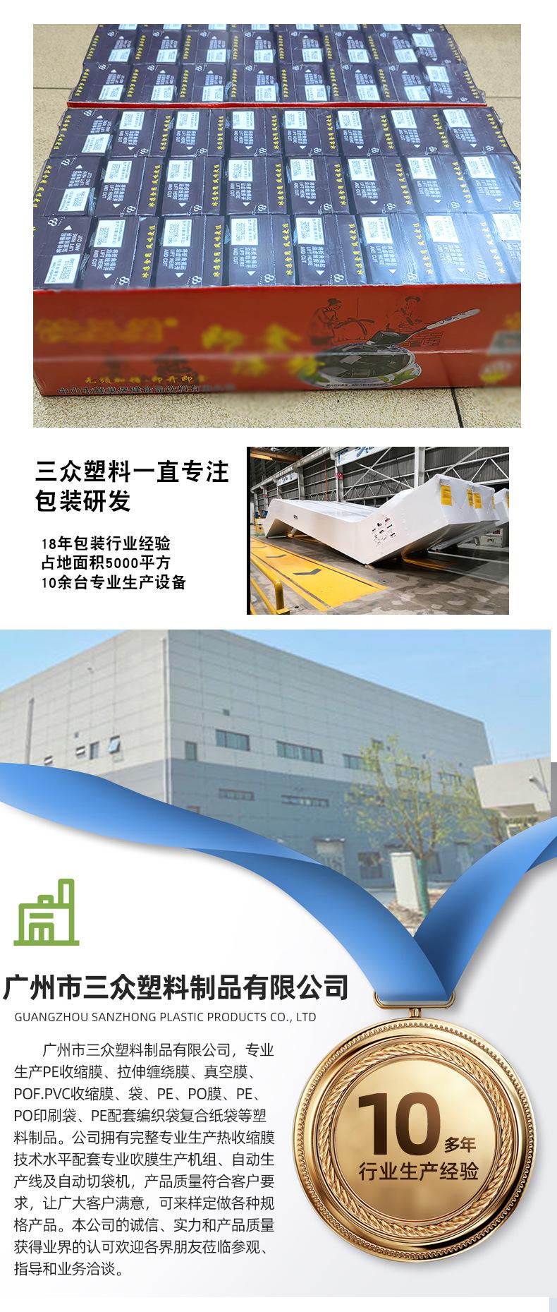 Fabricante de Guangzhou Procesamiento Película Termorretráctil de PE Transparente Embalaje Plástico Película Selladora Impresión Cerveza Bebida Película de Embalaje Retráctil de PE