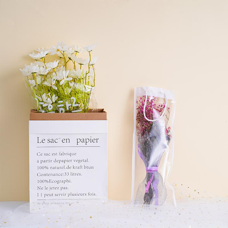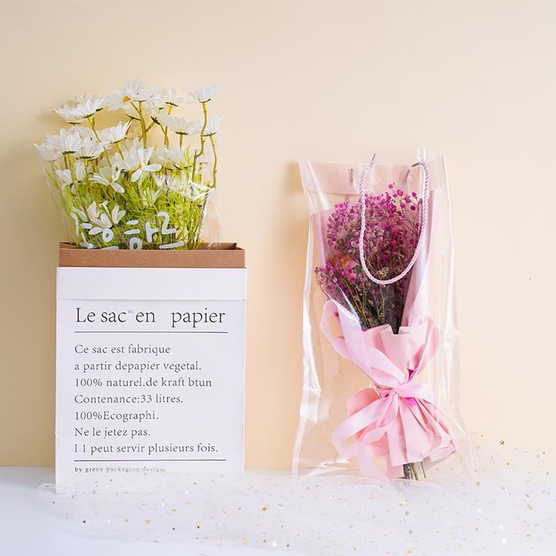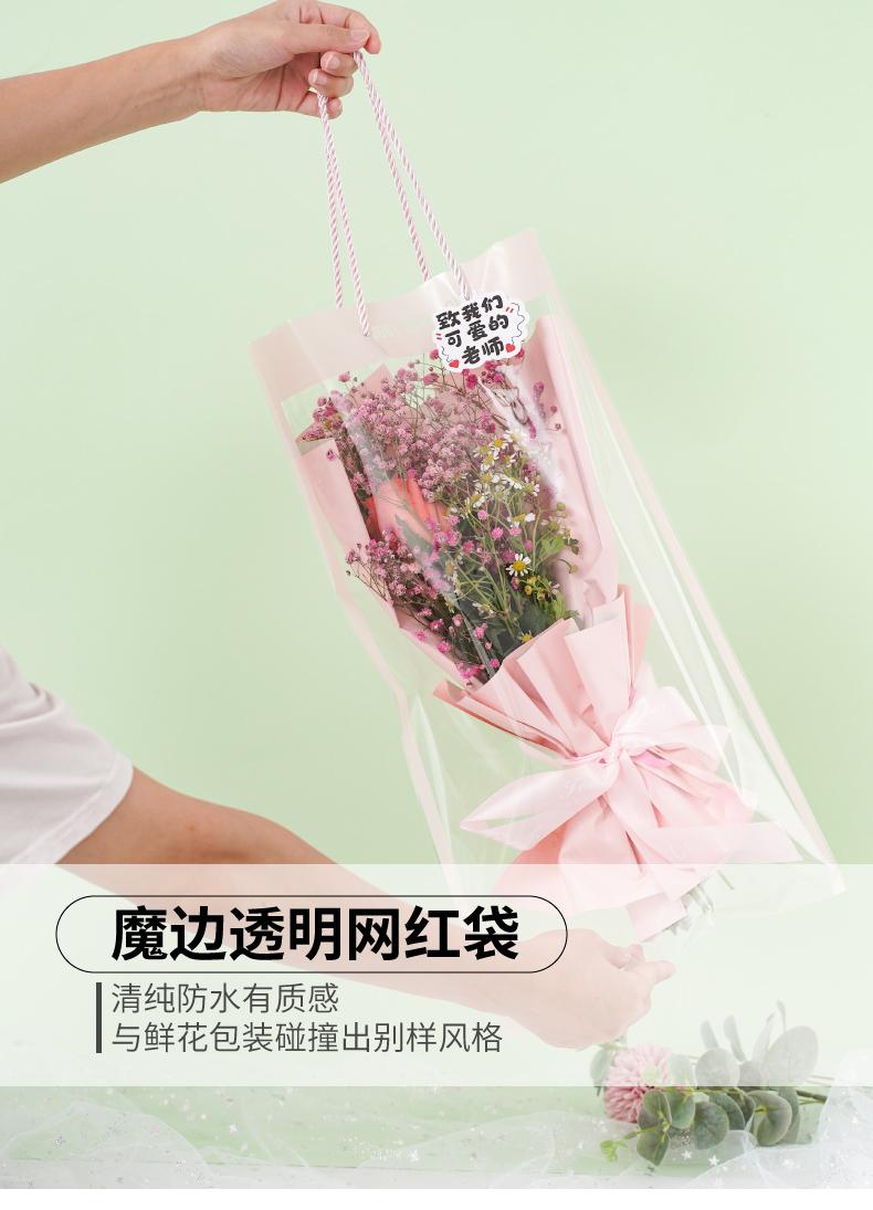 Bolso transparente para ramo de flores, bolsa de regalo, material de embalaje para flores, bolsa de transporte para regalo de ramo de rosas