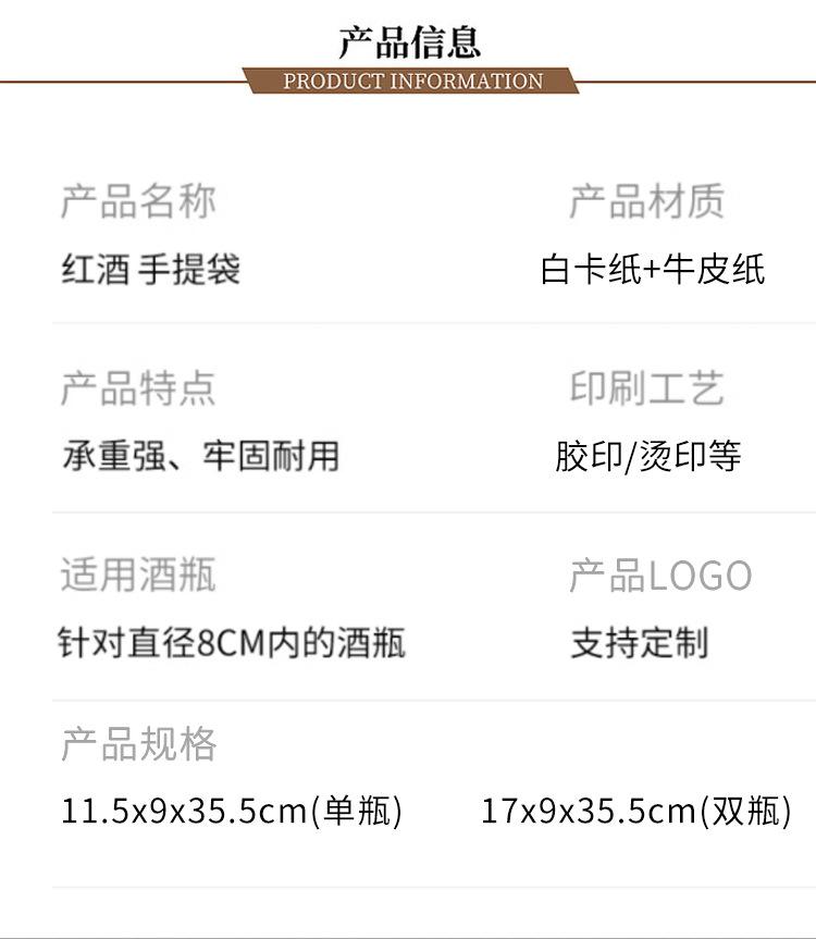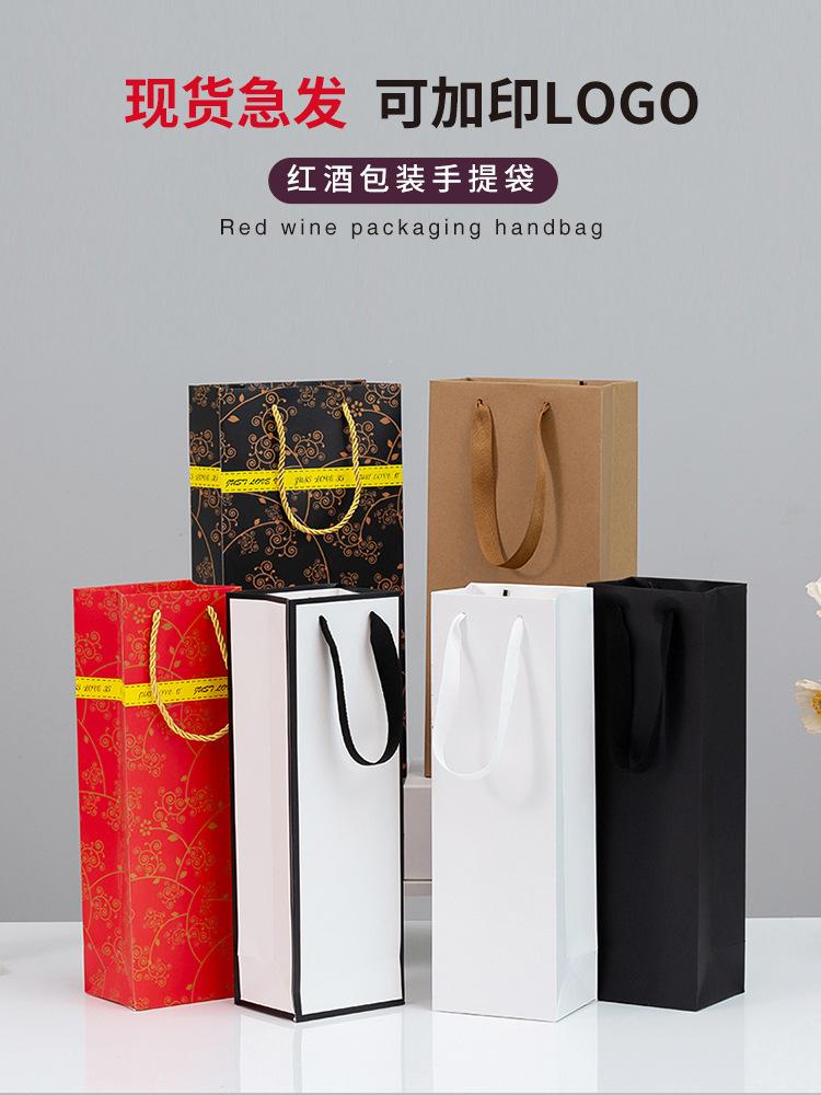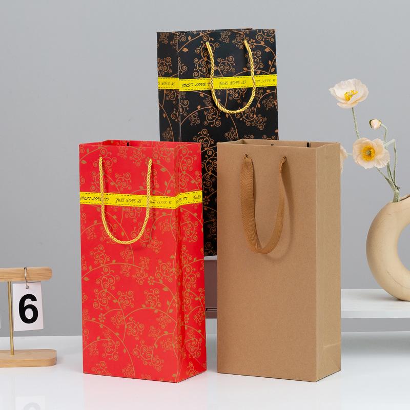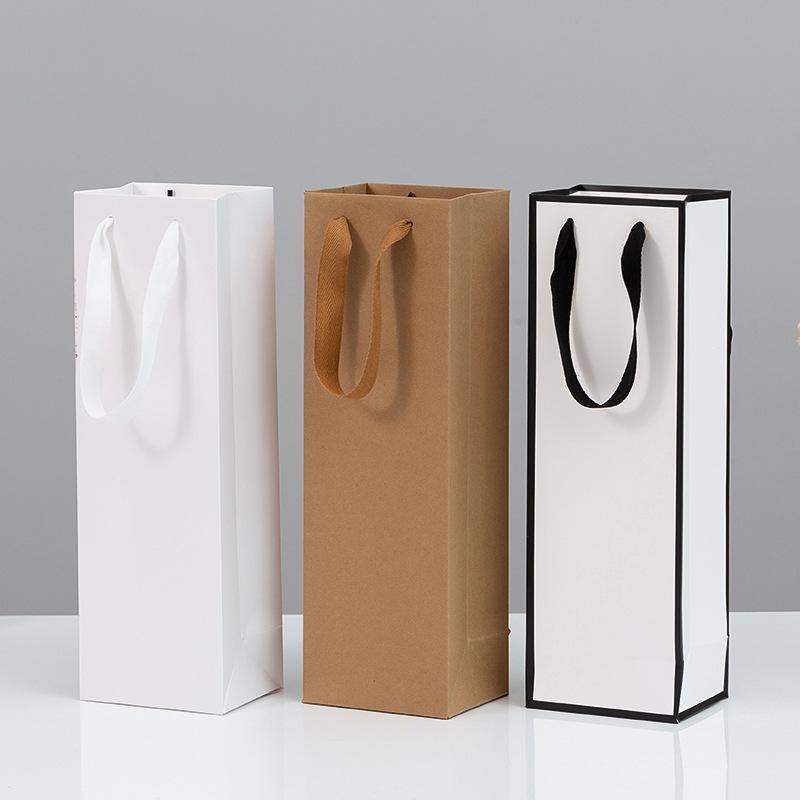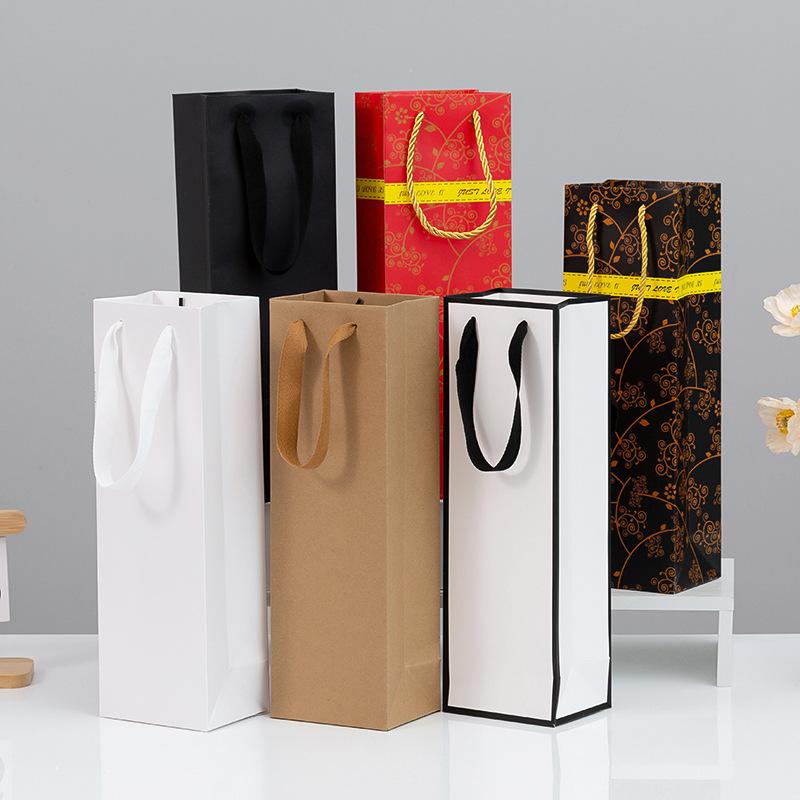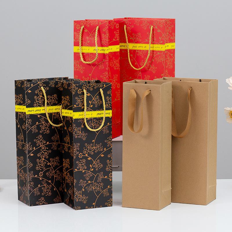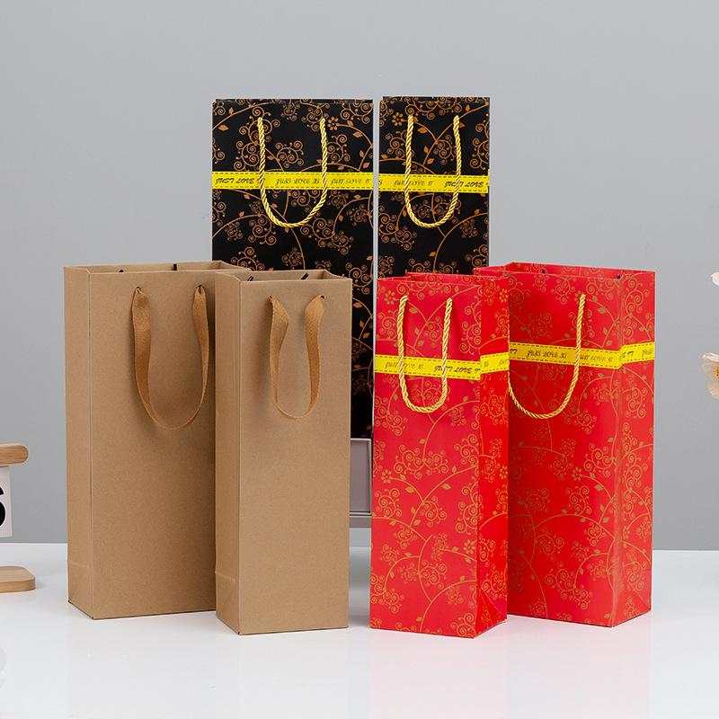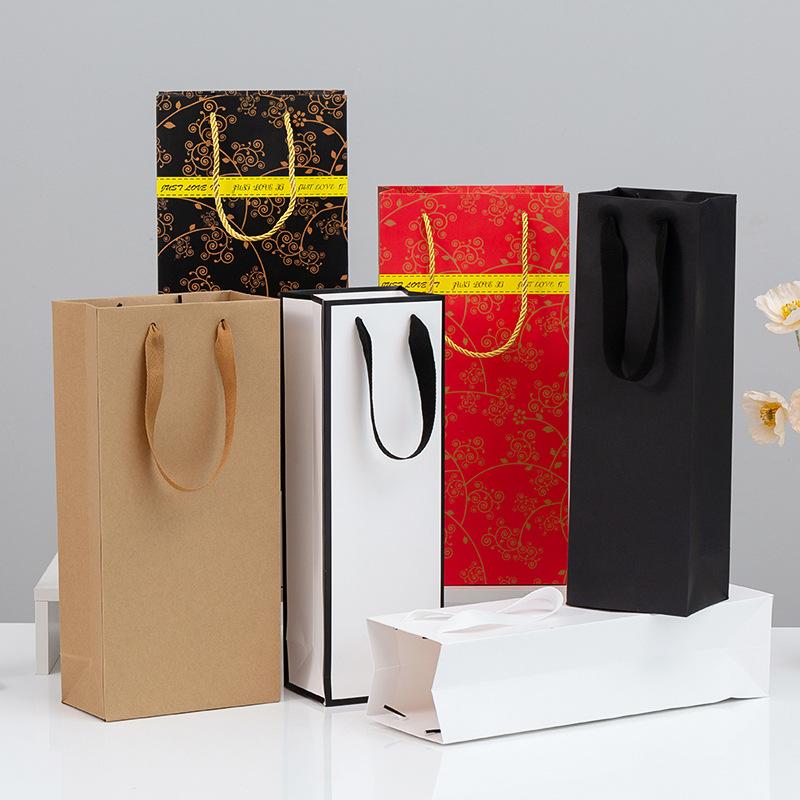 Bolsas de Papel para Regalo de Vino Individuales y Dobles, Bolsas Tote Engrosadas, Bolsas Kraft para Vino con Logotipo Impreso, Cajas de Regalo para Festividades