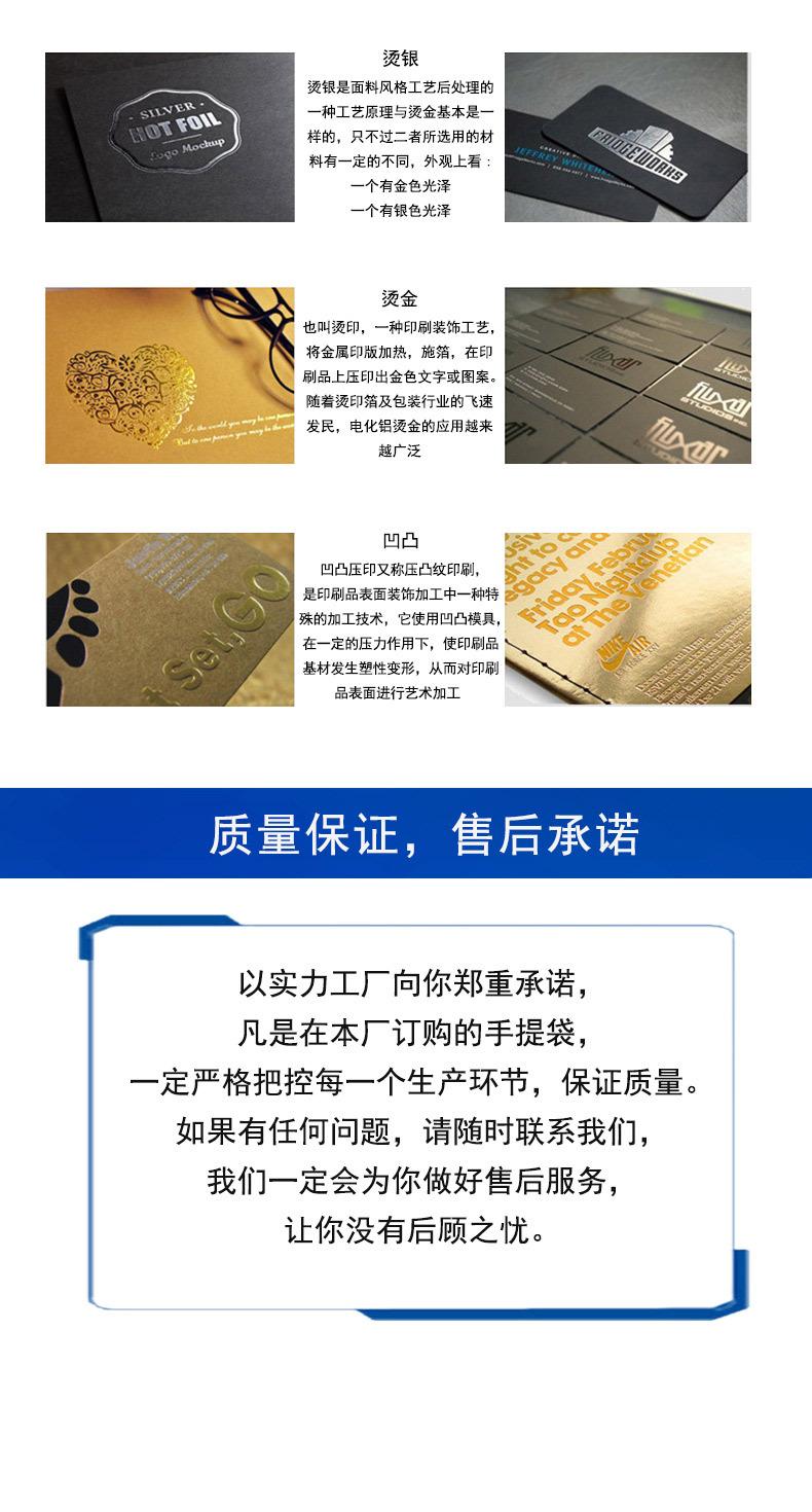 El grosor de las bolsas de papel kraft es de 120 g, 150 g, 200 g y 250 g; el de las cartulinas blancas y el papel estucado es de 200 g, 230 g y 250 g, etc.; y el de las bolsas de papel kraft sin cuerdas es de 90 g y 60 g. El grosor de las cajas de cartón blanco es de 250 g, 300 g, 350 g y 400 g. La impresión incluye monocromía, bicromía y color. El laminado de las cartulinas blancas y el papel estucado incluye película mate y película brillante.