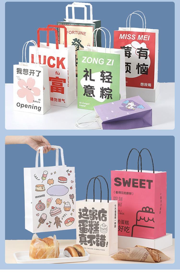 Bolsa de Papel Kraft para Regalo con Asa Personalizada para Panadería Té con Leche Café Bolsa de Mano Regalo de Navidad Bolsa de Papel Venta al por Mayor