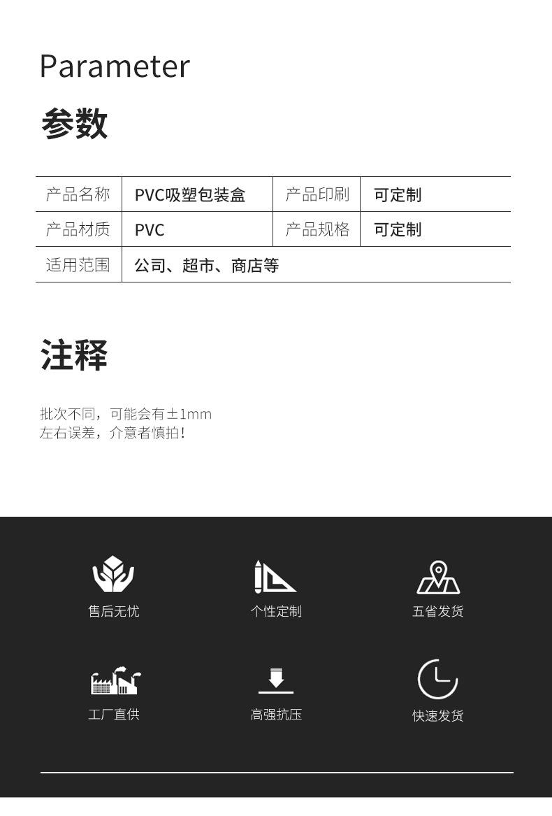 Aviso: El precio indicado en el título no corresponde al precio de la caja transparente, sino a un precio establecido para facilitar el pago. Por favor, pague según el precio cotizado por nuestra fábrica para la caja de embalaje personalizada.,El precio específico se basa en el material, las especificaciones, la cantidad, la forma, el color o la muestra real de su producto personalizado, en lugar de un precio fijo.!Por favor, póngase en contacto con el servicio de atención al cliente o agregueQQHabla con el artesano!! |