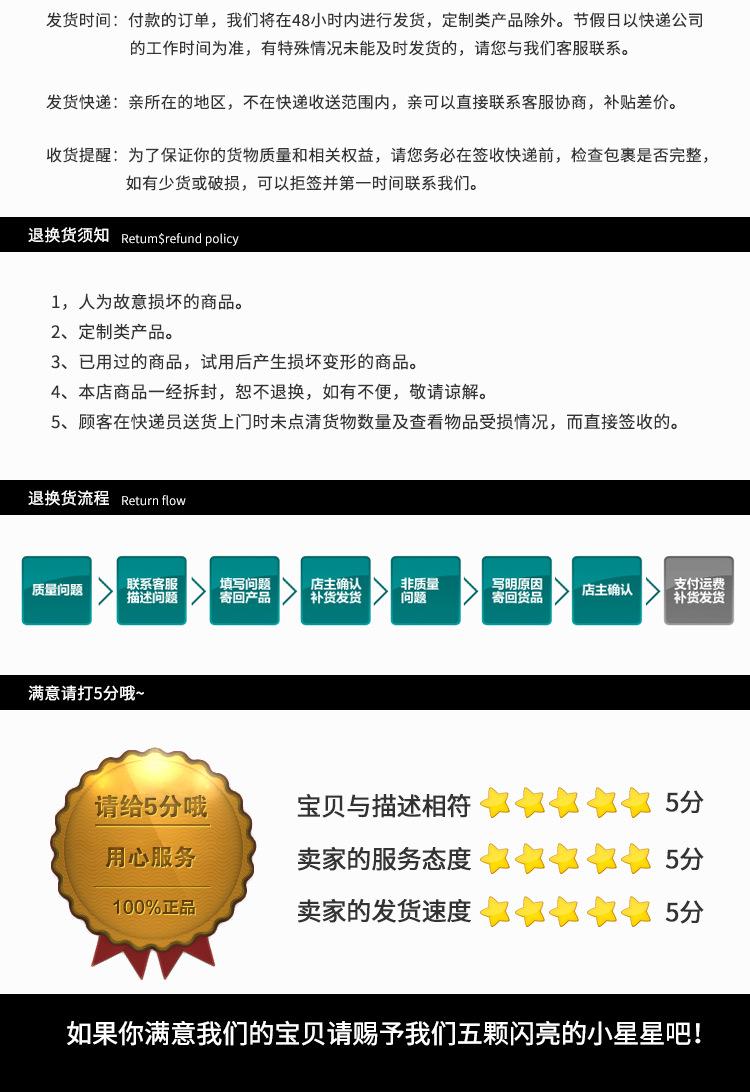 Respuesta: Recomendamos usar Alipay. El pago es seguro y cómodo para futuras compras. Aceptar transferencias bancarias puede resultar un poco incómodo. Por favor, tome una foto del producto e indique que desea realizar la transferencia bancaria antes de realizar el pago para que podamos informarle sobre el envío lo antes posible tras recibir el pago. Tras el envío, contáctenos a través de Wangwang o por teléfono móvil con su número de cuenta de Alibaba, la entidad bancaria de la remesa y el importe. Gestionaremos la entrega tras verificar el pago y la exactitud de los productos.