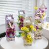 Caja portátil creativa de flores en forma de corazón, florería, empaque de flores, canasta portátil para flores, empaque para ramo, bolsa de regalo, caja de regalo con estampado dorado