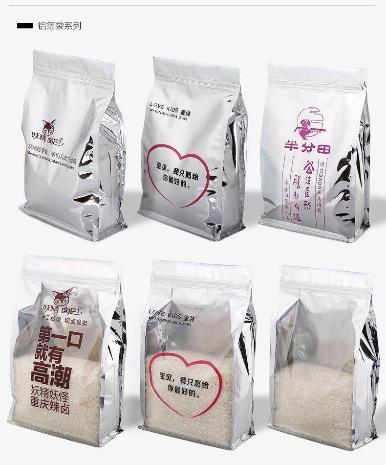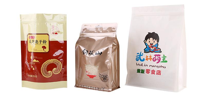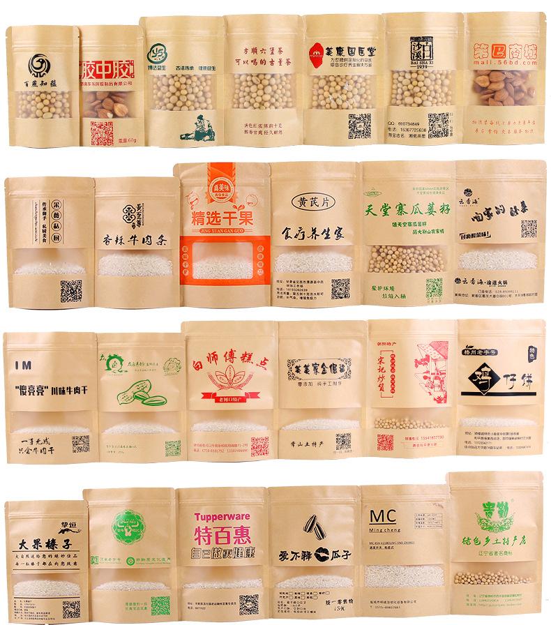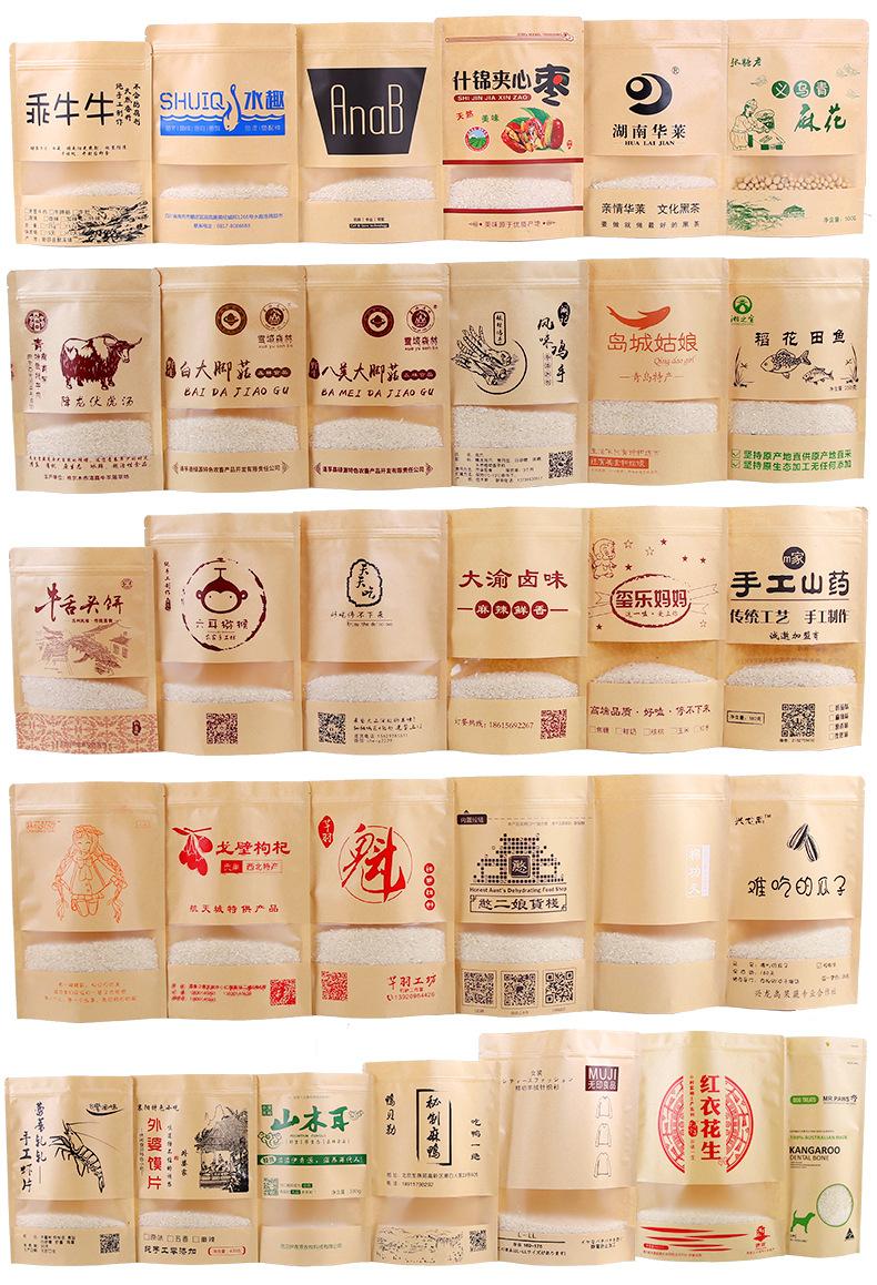 Bolsa de envasado de alimentos impresa de tamaño personalizado, bolsa de vacío de papel de aluminio, bolsa de papel kraft, bolsa transparente con autosellado, bolsa OPP