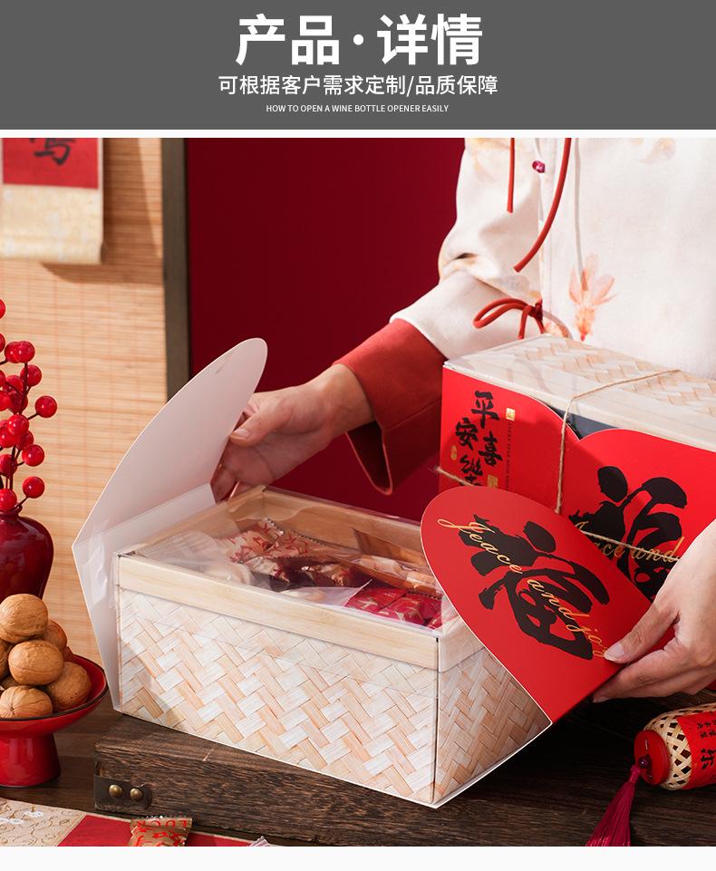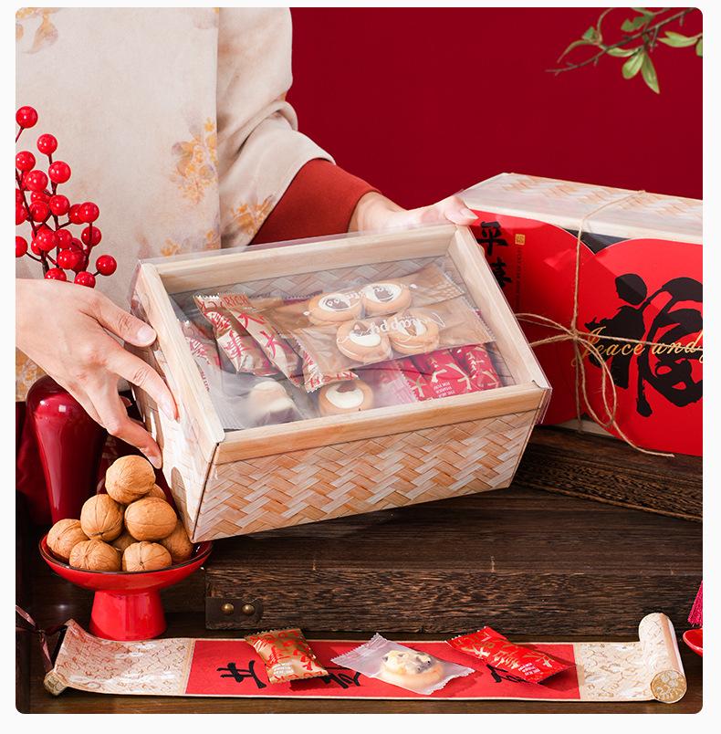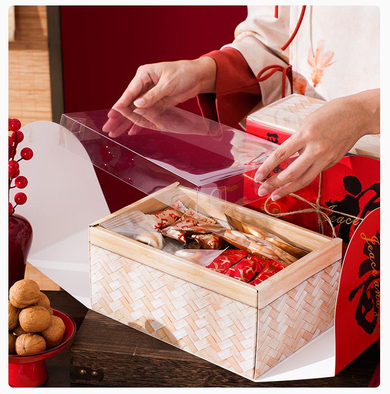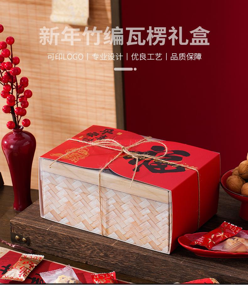 Caja de Regalo de Cartón Corrugado de Bambú Bronceado Regalo de Año Nuevo Caja de Embalaje para Horneado Snack de Nueces Galletas Dulces Caja Vacía