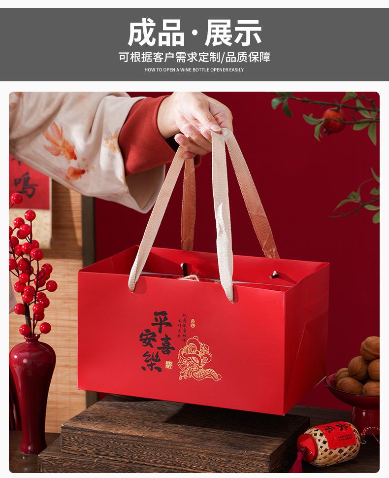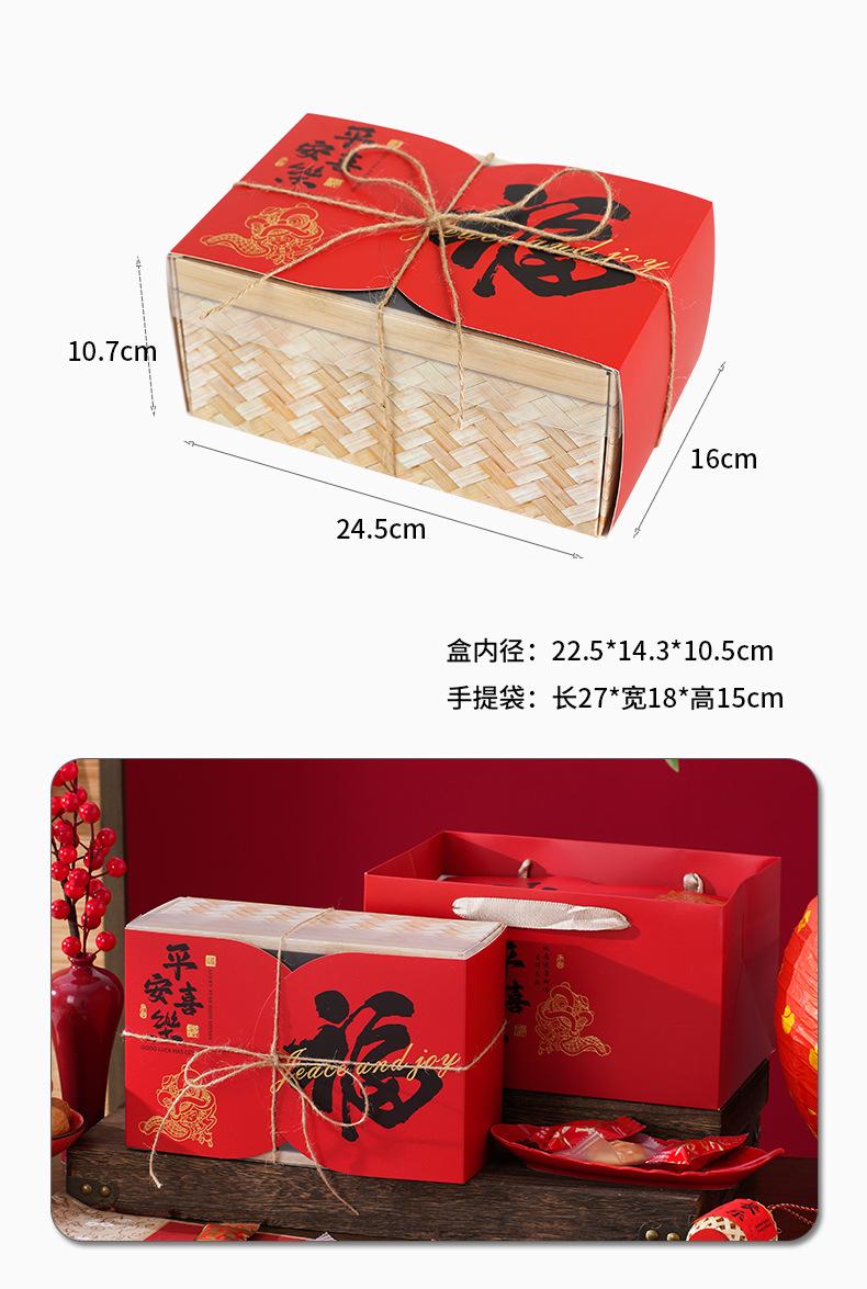 Bamboo corrugated hot stamping gift box with the word "fu" * 1 set; box + handbag + hemp rope; white card + corrugated paper