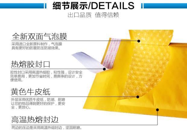 Bolsa de burbujas de papel kraft amarillo, gruesa, a prueba de golpes, para embalaje de libros y prendas de vestir.