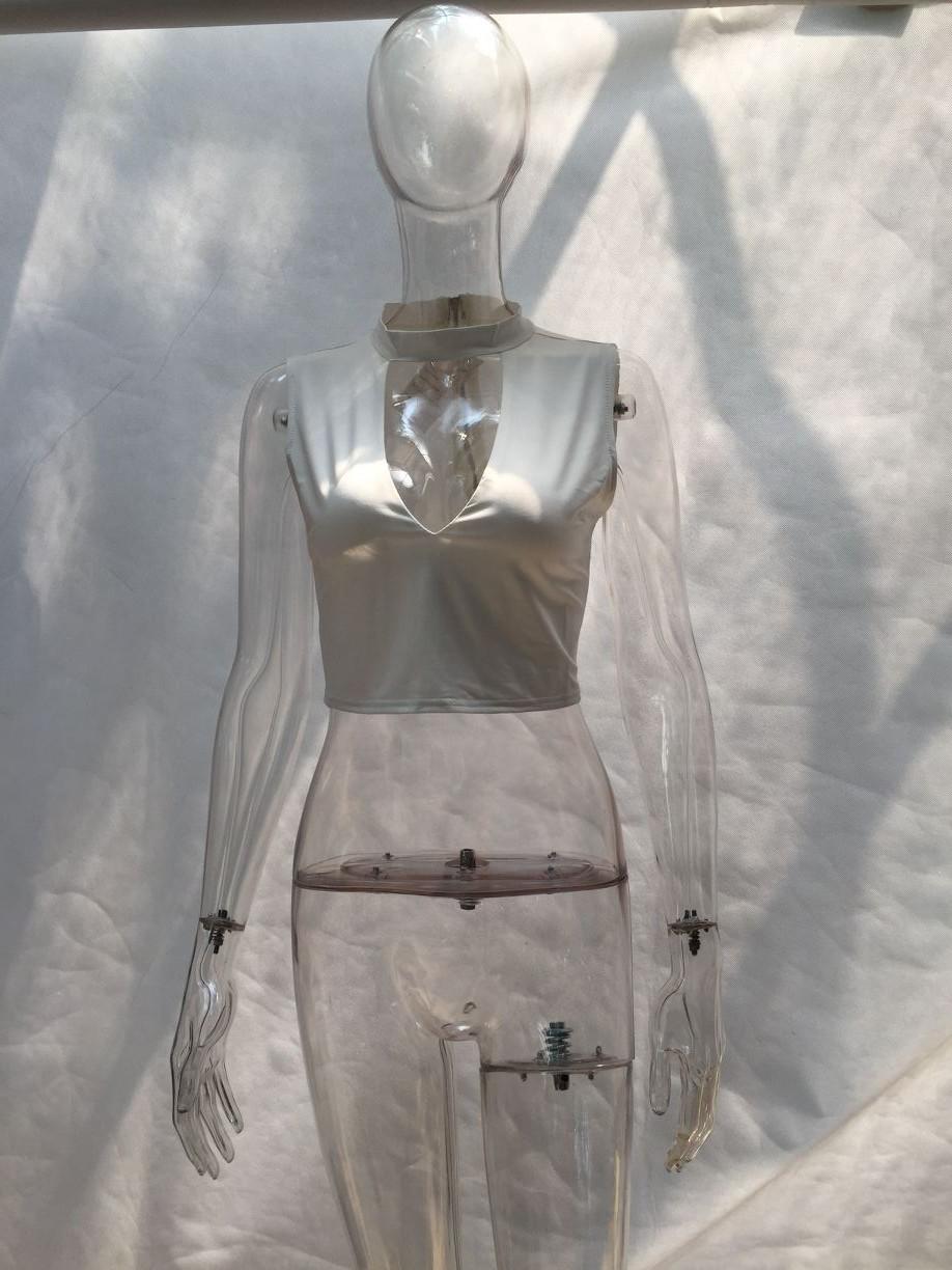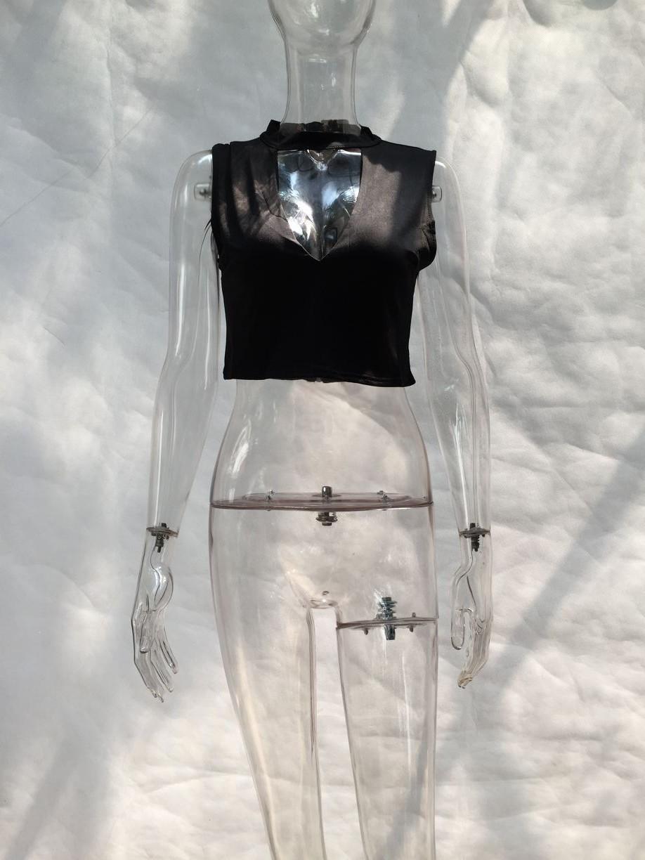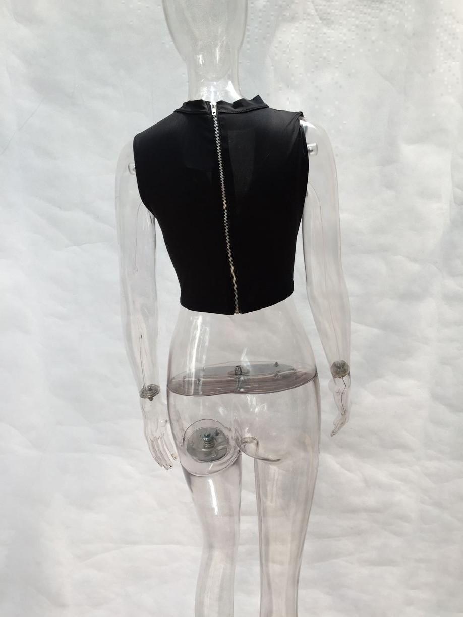 Top sexy estilo europeo y americano con cuello halter, sin mangas y con cremallera en la espalda.