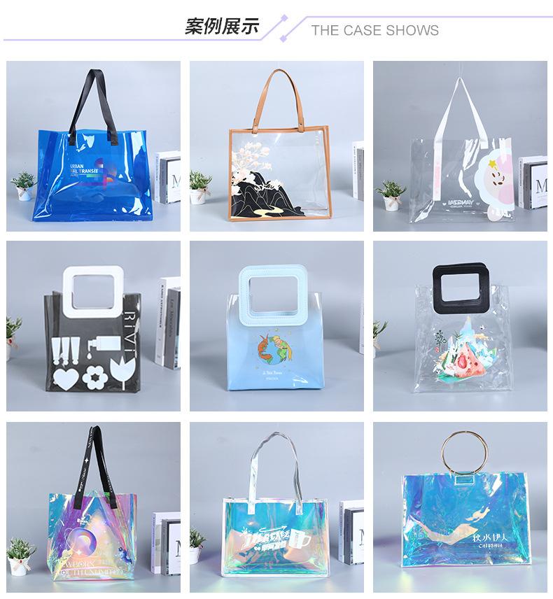 Bolsa de PVC transparente con láser, bolsa de plástico con cierre a presión, bolsa de regalo, bolsa transparente, bolsa de compras