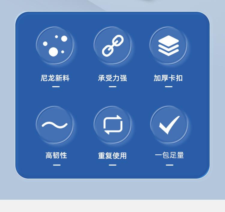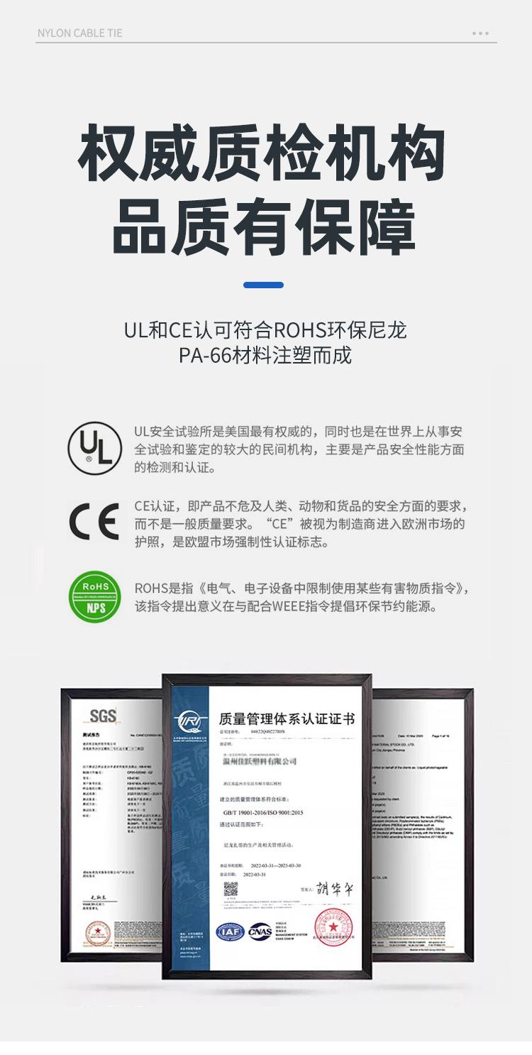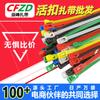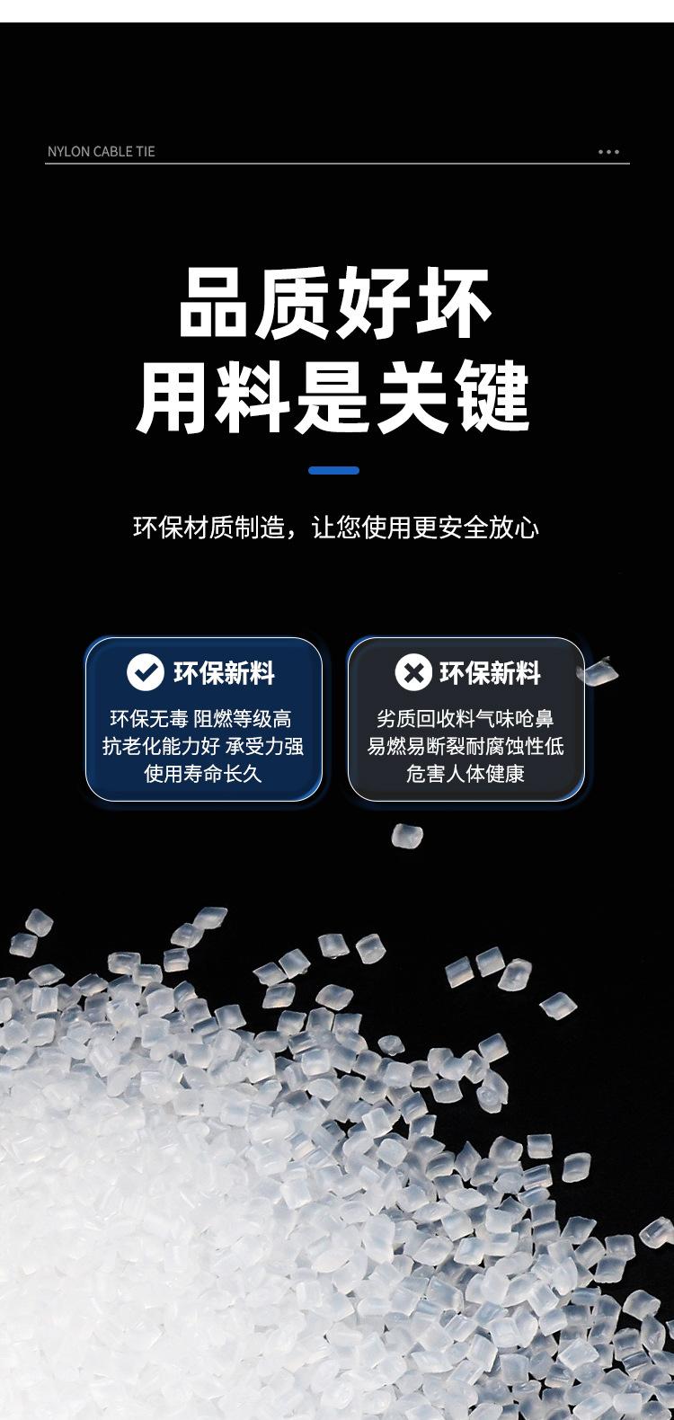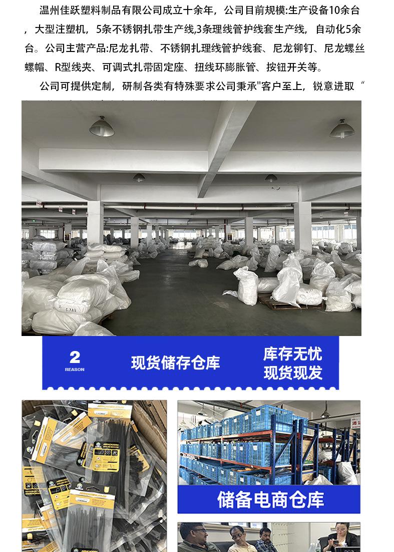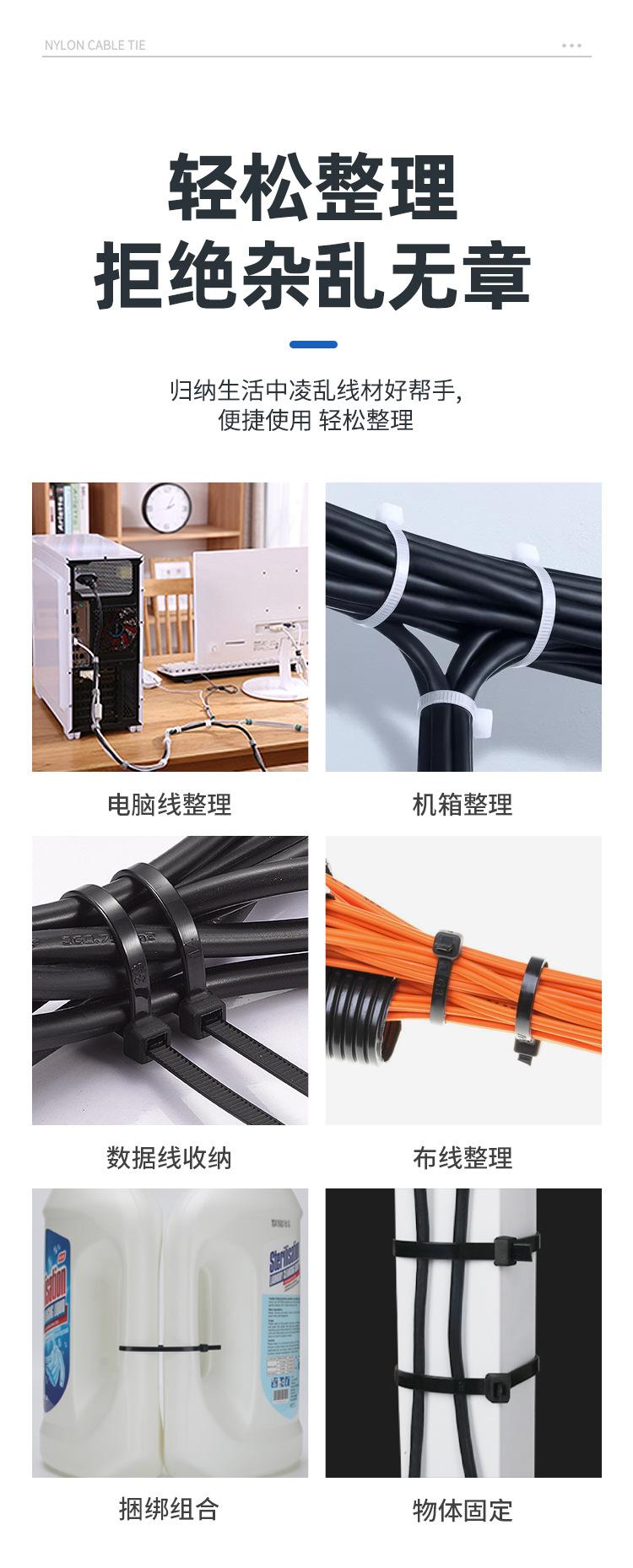 Brida de plástico con hebilla aflojable, color blanco y negro, reutilizable, con cierre fijo y desmontable.