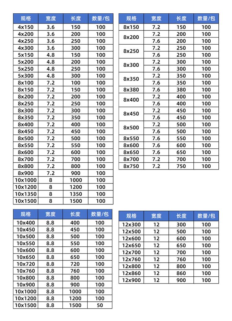 (4.8 wide) 5*150 mm/100 strips, (4.8 wide) 5*250 mm/100 strips, (4.8 wide) 5*200 mm/100 strips, (4.8 wide) 5*3...