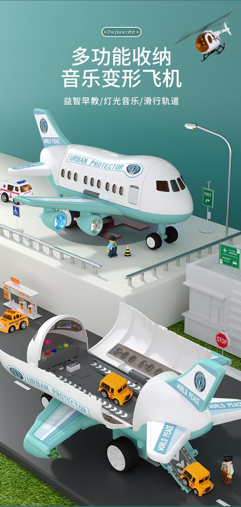 Avión Infantil Modelo de Inercia Coche Juego de Almacenamiento Música Juguete Educativo de Crecimiento Alta Simulación