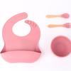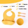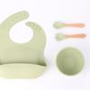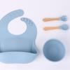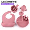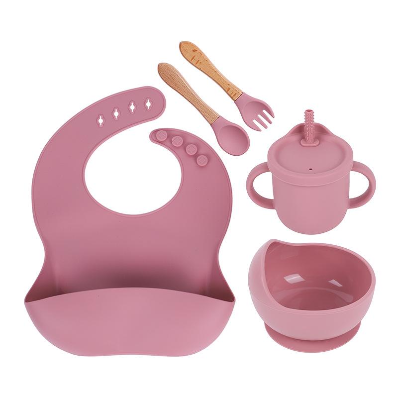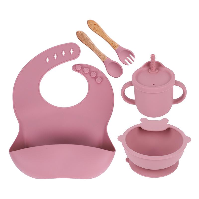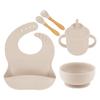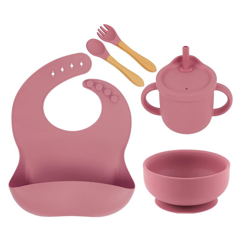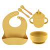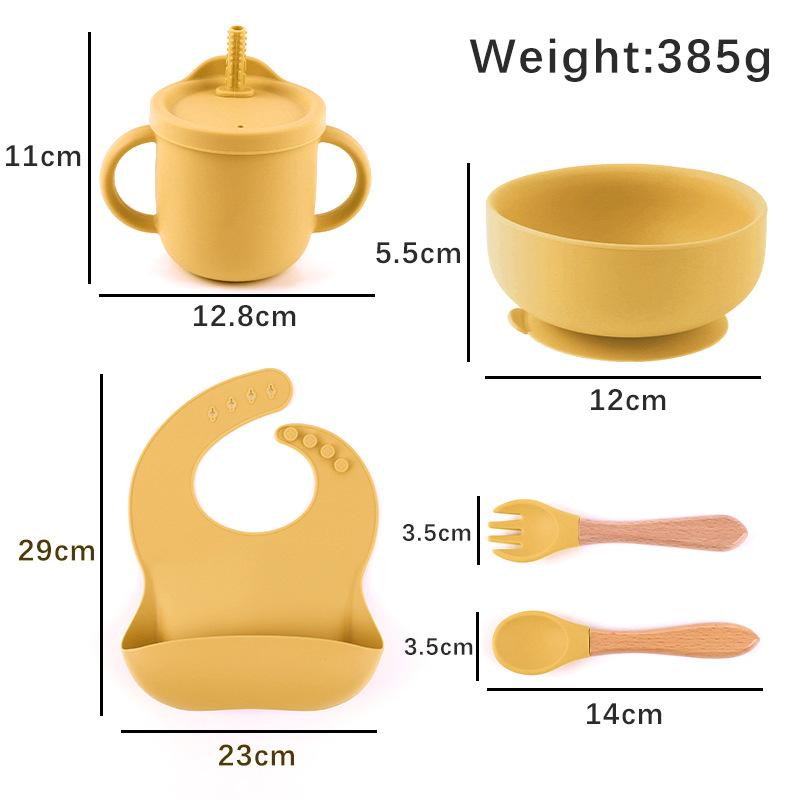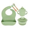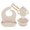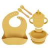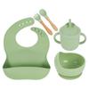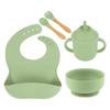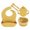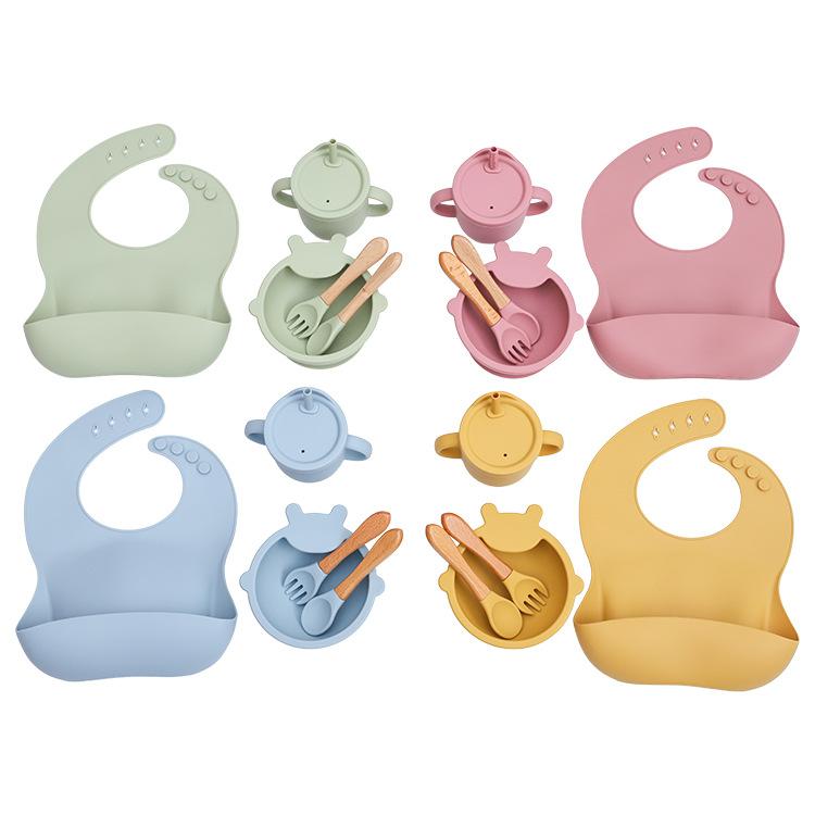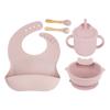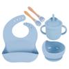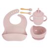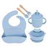 Babero de Silicona para Niños Transfronterizo, Tenedor, Cuchara, Tazón de Suplementación, Vaso de Agua para Bebé, Juego de Vajilla de Silicona de Grado Alimenticio para Alimentación de Bebé