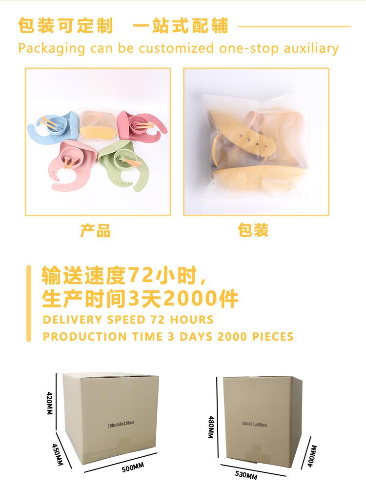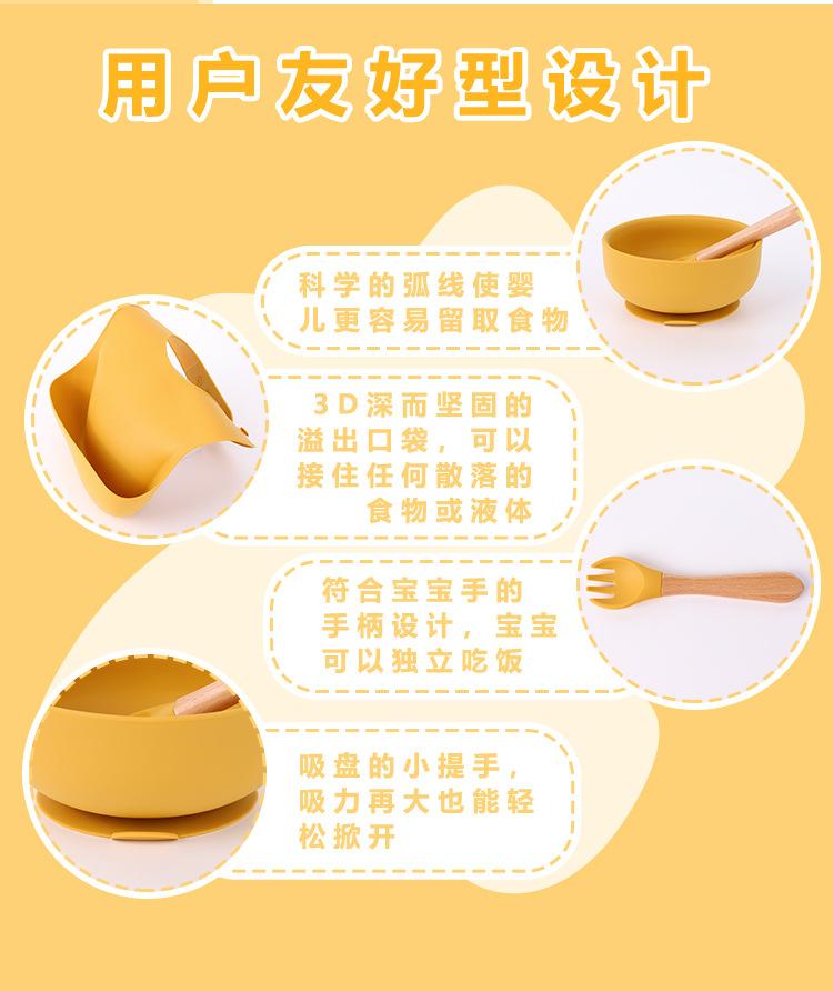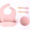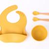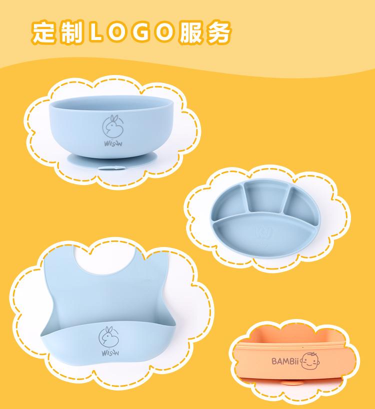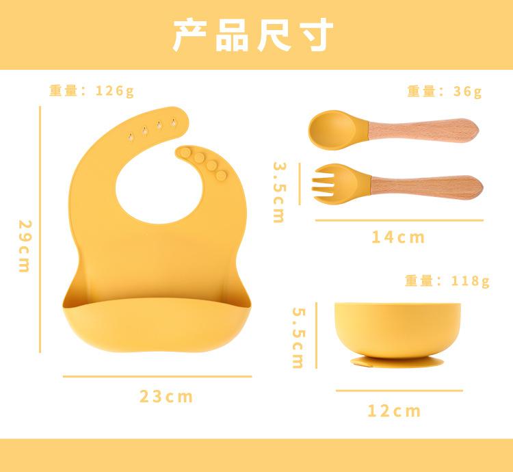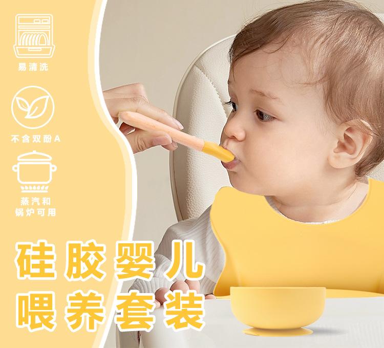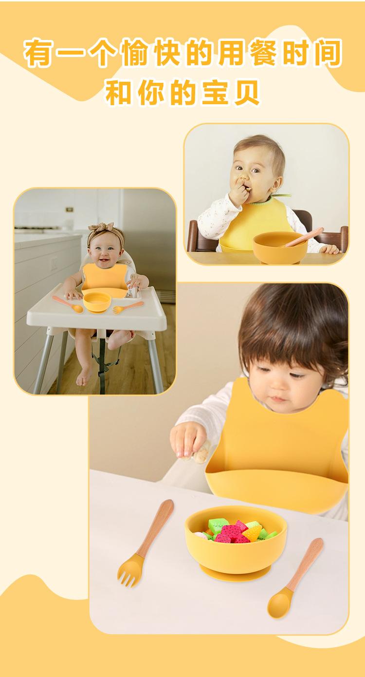 Babero de Silicona para Niños Transfronterizo, Tenedor, Cuchara, Tazón de Suplementación, Vaso de Agua para Bebé, Juego de Vajilla de Silicona de Grado Alimenticio para Alimentación de Bebé