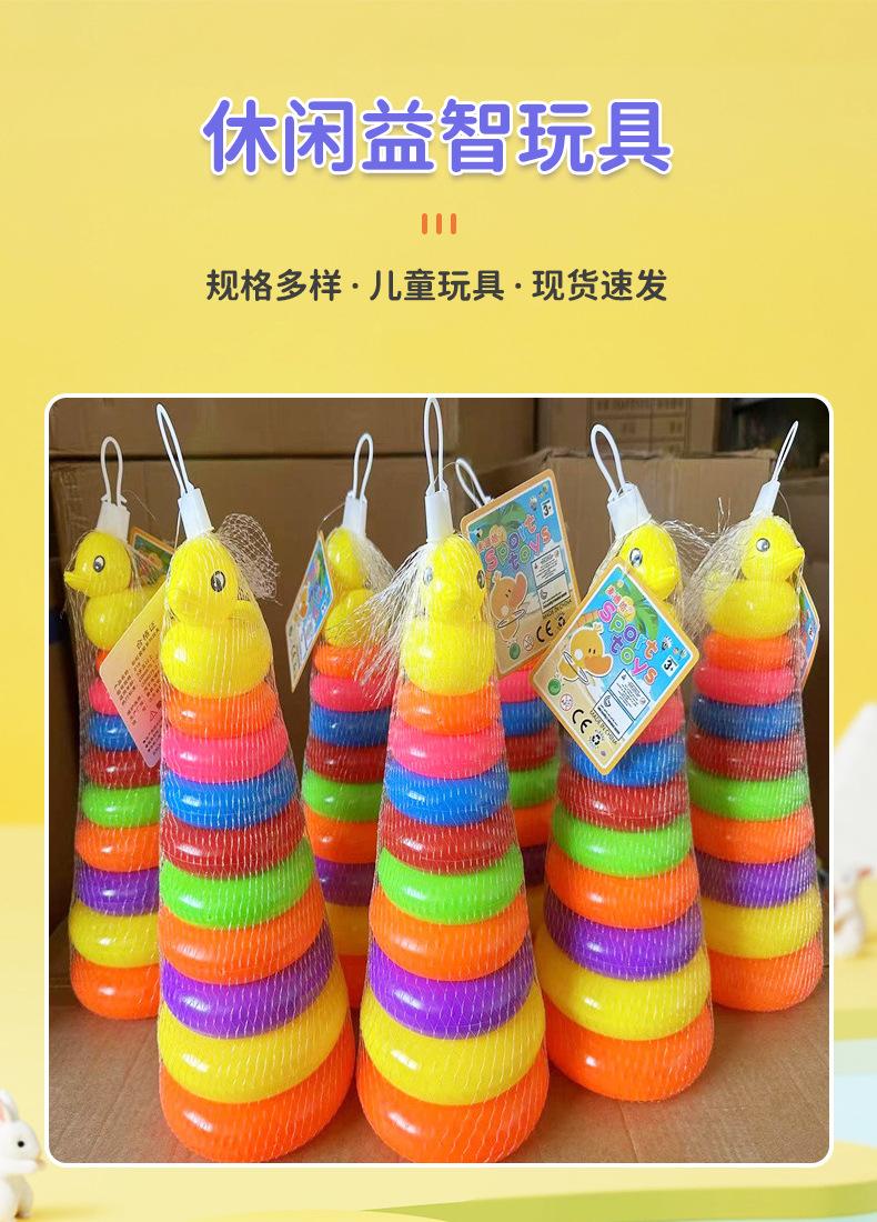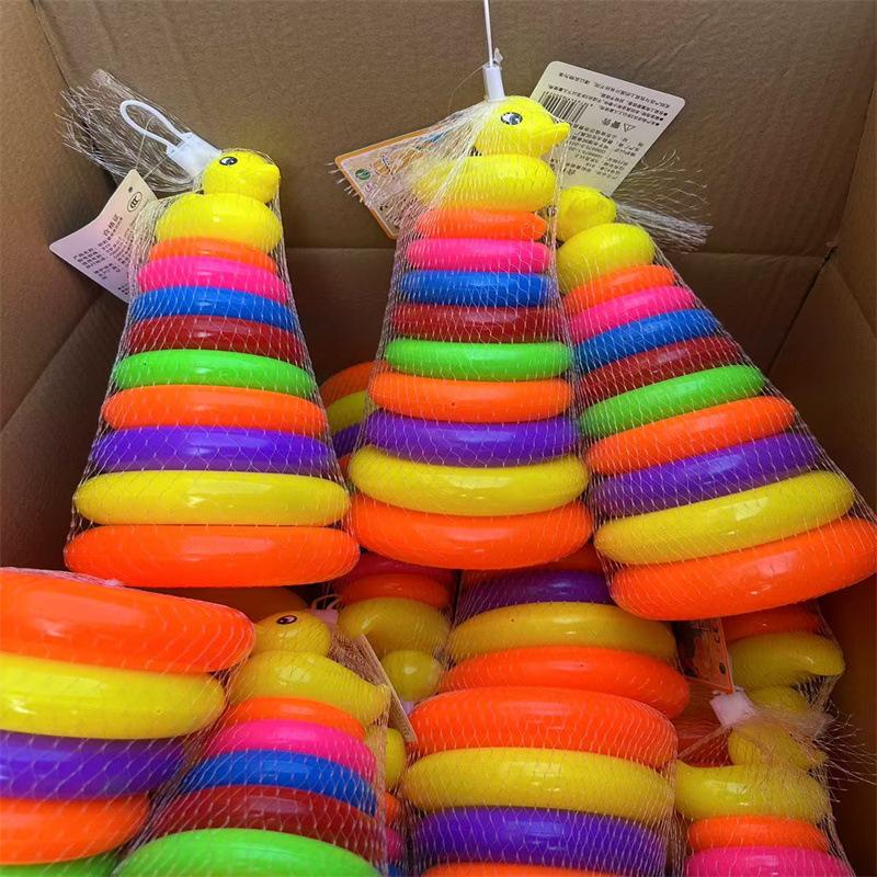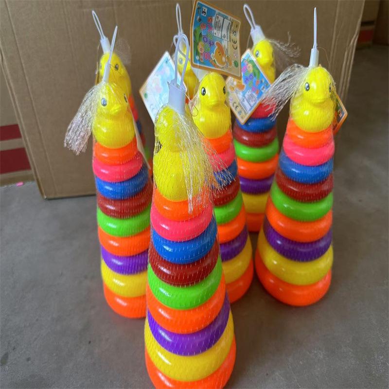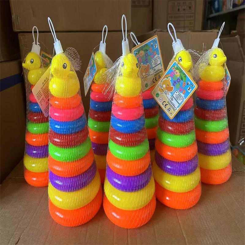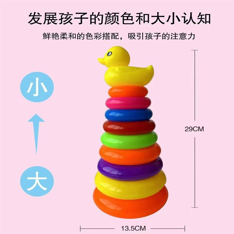 Juguete de anillo arcoíris Jenga para niños, educativo, para educación temprana, para comprender los colores, torre de capas apiladas, pequeño pato amarillo, venta al por mayor