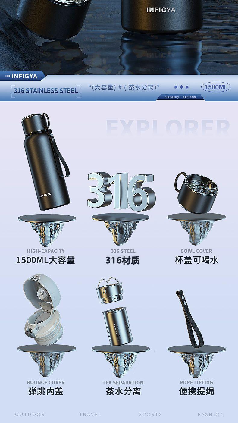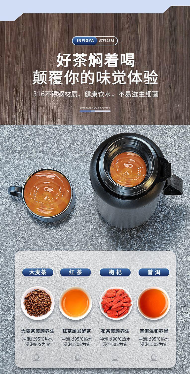 Termo de acero inoxidable 316 de gran capacidad para hombre, taza de té con separación de agua y frío, portátil para coche y exterior.