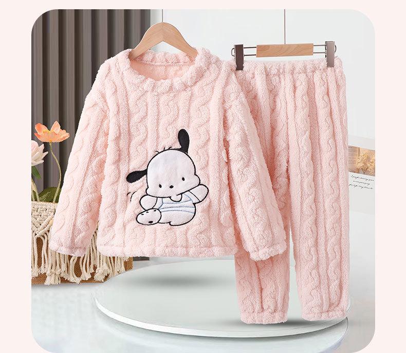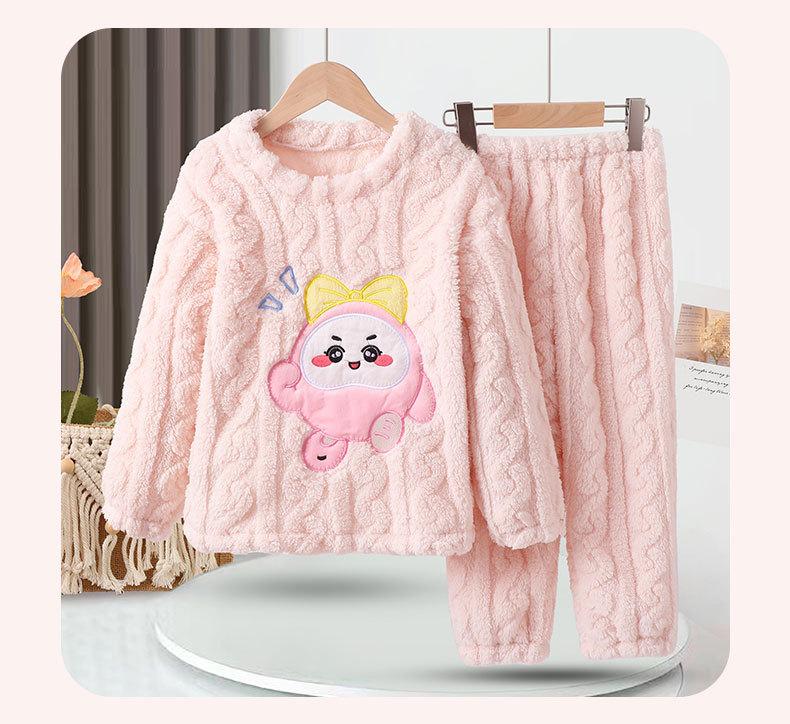 Nuevos pijamas de invierno para niños, de terciopelo jacquard, para niñas, de terciopelo cortado, con bonitos dibujos animados, para niños medianos y grandes, ropa para el hogar